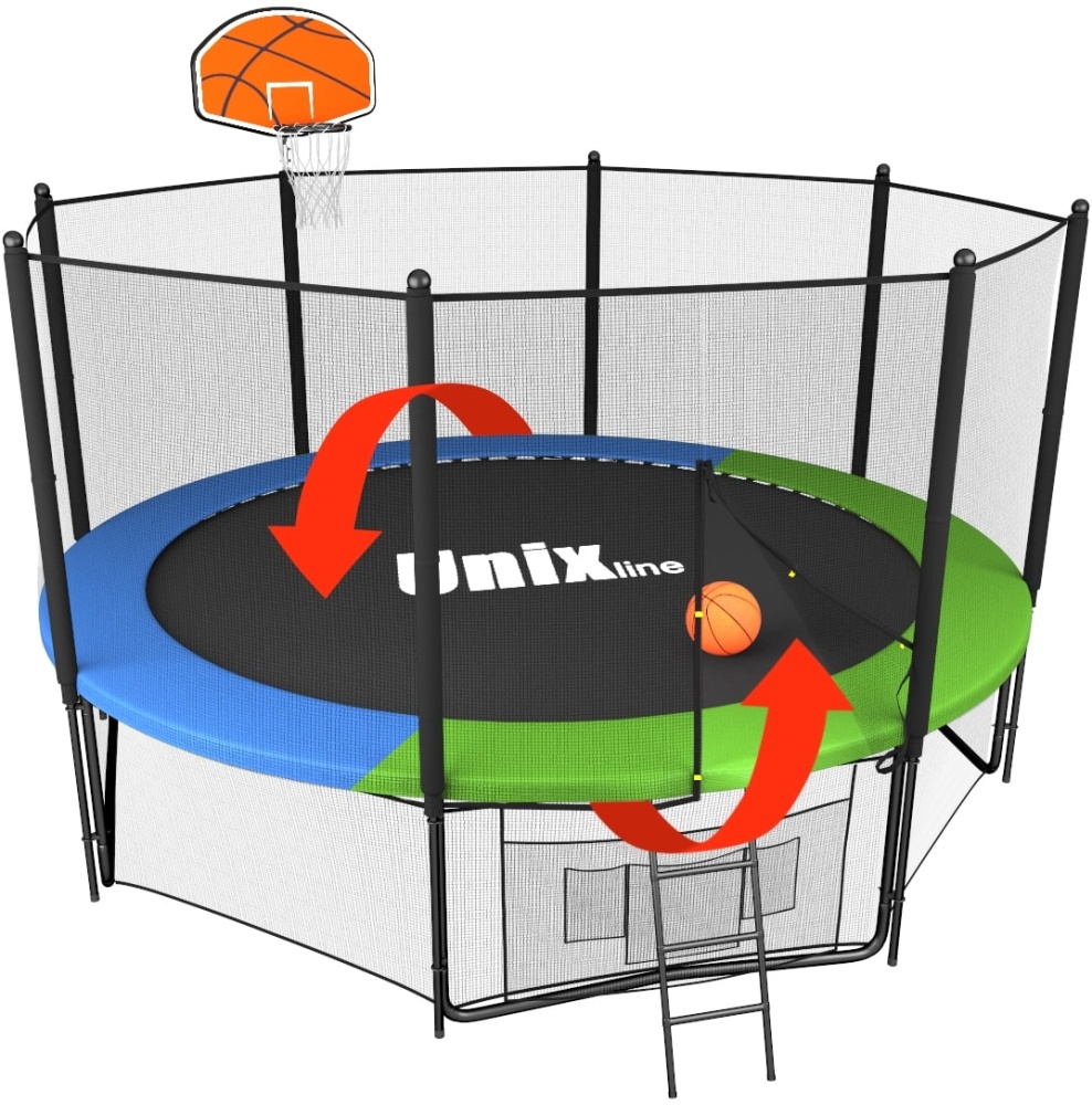 Баскетбольный щит с кольцом для батута UNIX line Classic (inside/outside) и UNIX line Simple (inside)* 8ft, 10ft, 12ft, 14ft Мяч и насос в комплекте! Размер упаковки: 66х42х6 см *для батутов серии Simple данная опция доступна только для моделей с внутренней защитной сетью (inside)