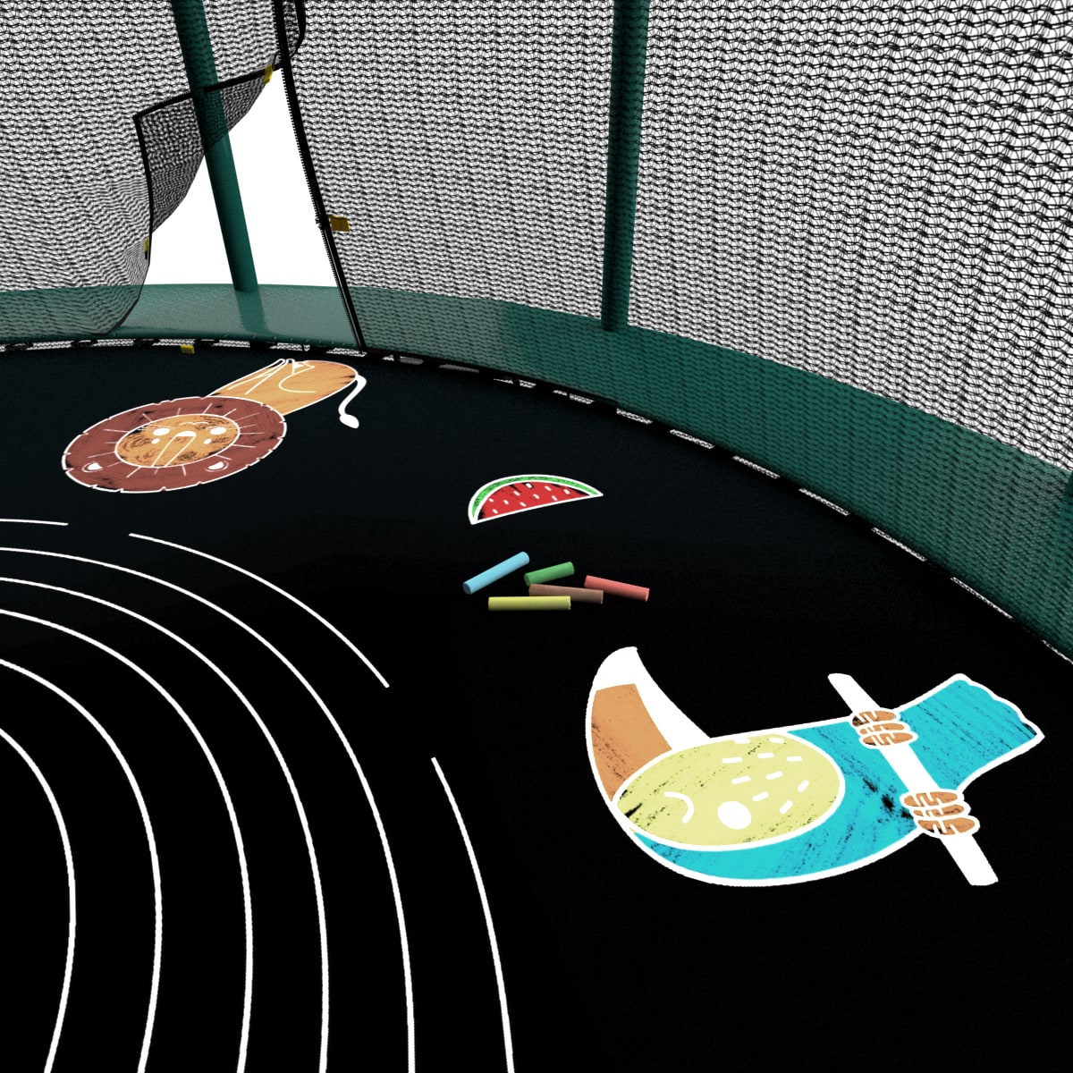 Мелки для рисования на полотне прыжкового полотна батута UNIX line. Цвета: белый, красный, желтый, синий, зеленый. Легко стираются влажной губкой с поверхности прыжкового полотна.