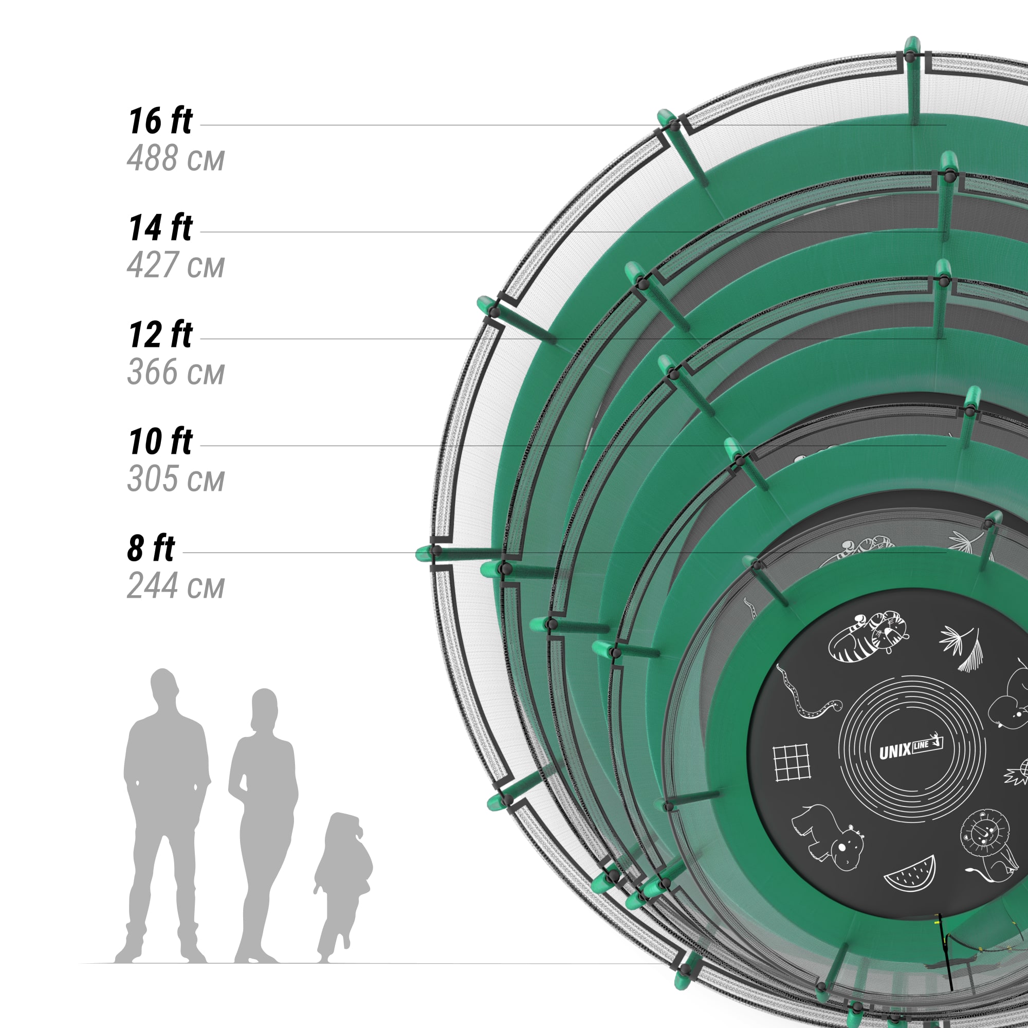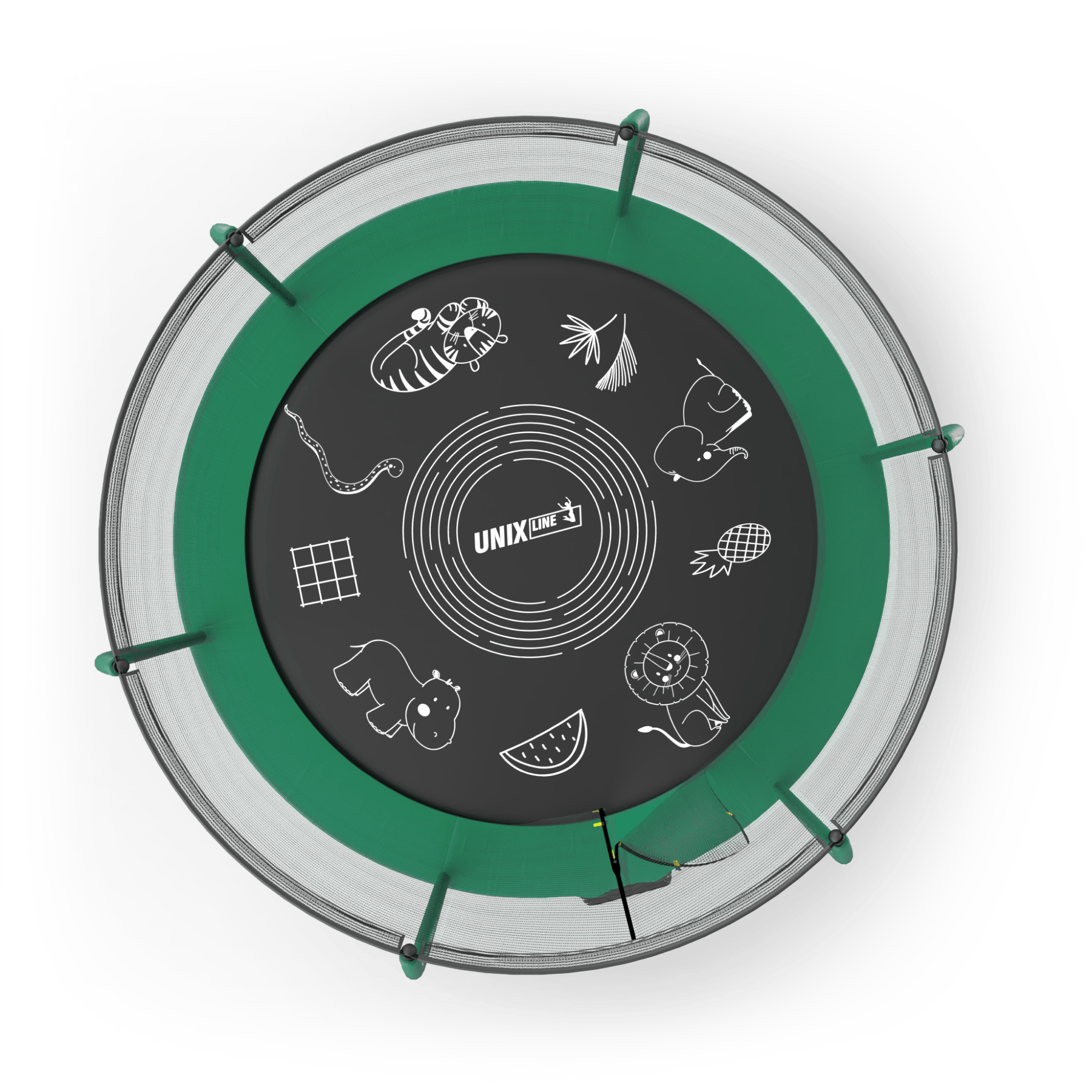 Для реализации самых интересных идей дизайнеры батутов UNIX line SUPREME GAME (4 in 1) специально оставили пустые места на прыжковом полотне. Полная свобода творчества, ограничивающаяся лишь фантазией художника.