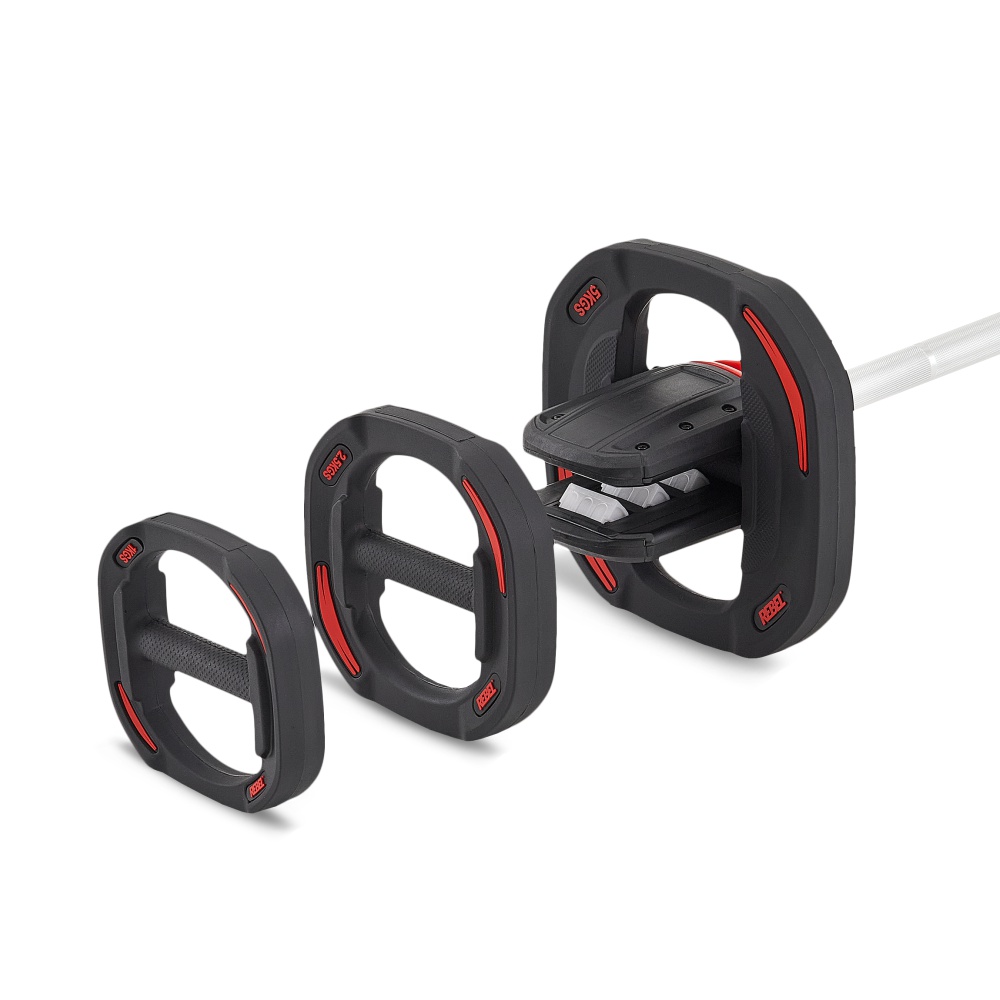Также есть возможность дополнить комплект дисками по 10 кг и по 5 кг (продаются отдельно), что позволяет увеличить максимальную нагрузку и адаптировать штангу REBEL под любые цели и уровни подготовки. Это делает данную модель особенно универсальной - вы можете легко расширить вес своей штанги по мере прогресса.