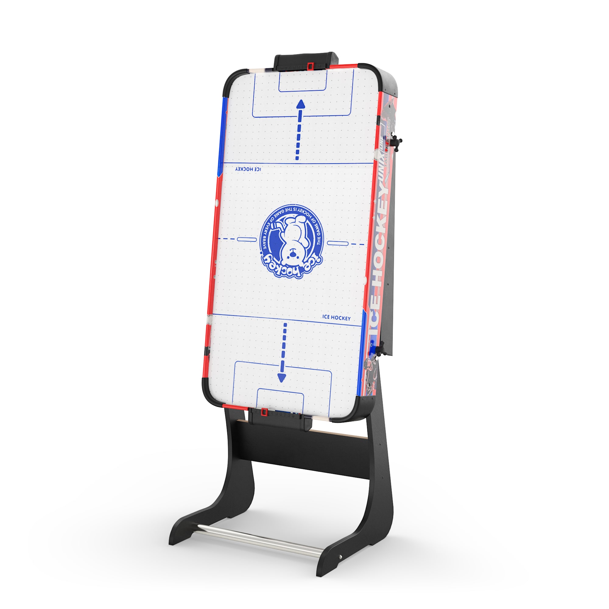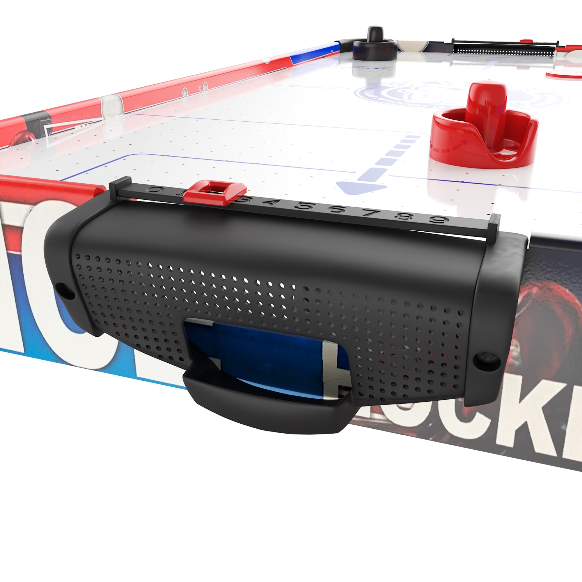Благодаря мощному вентилятору, игровая поверхность большого аэрохоккея обеспечивает плавное и безупречное движение игровых дисков, добавляя реалистичности и скорости в игру. В комплект входят 2 шайбы и 2 биты из ABS-пластика. Размер шайб Ø40 мм и бит Ø60 мм. Стол оснащен механическим счетчиком забитых голов для каждого игрока.