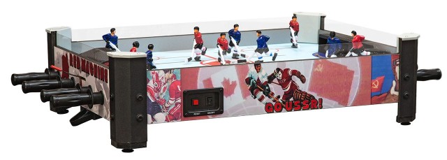 - Корпус настольного хоккея Alaska поставляется в собранном виде. Вам лишь необходимо установить игроков, прикрутить ножки и механические счеты. Стол готов к игре!