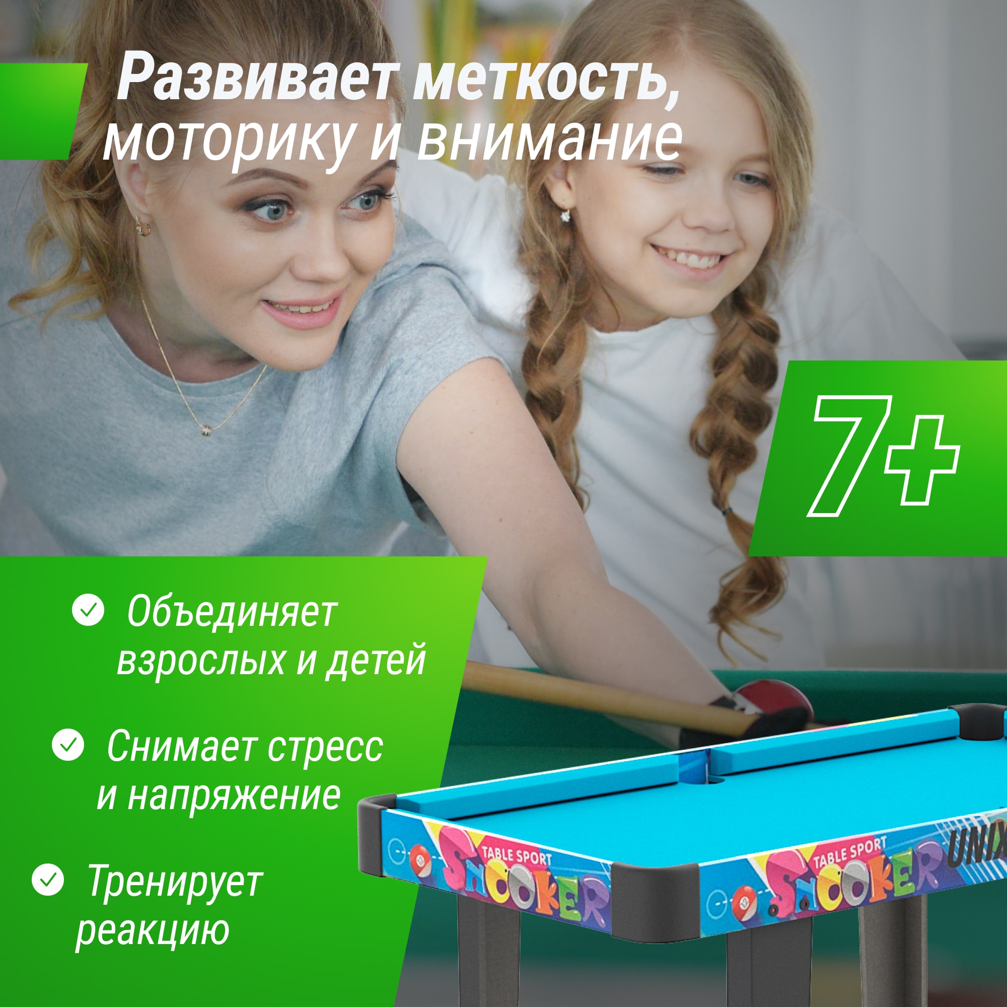 Также на столе можно играть в настольный мини бильярд, он не только развлекает, но и развивает навыки стратегического мышления, точности и координации движений. Бильярд - это отличный способ провести время с друзьями и семьей, создавая незабываемые моменты и конкуренцию. К полю мини бильярда в комплекте идут 2 деревянных кия и шары.