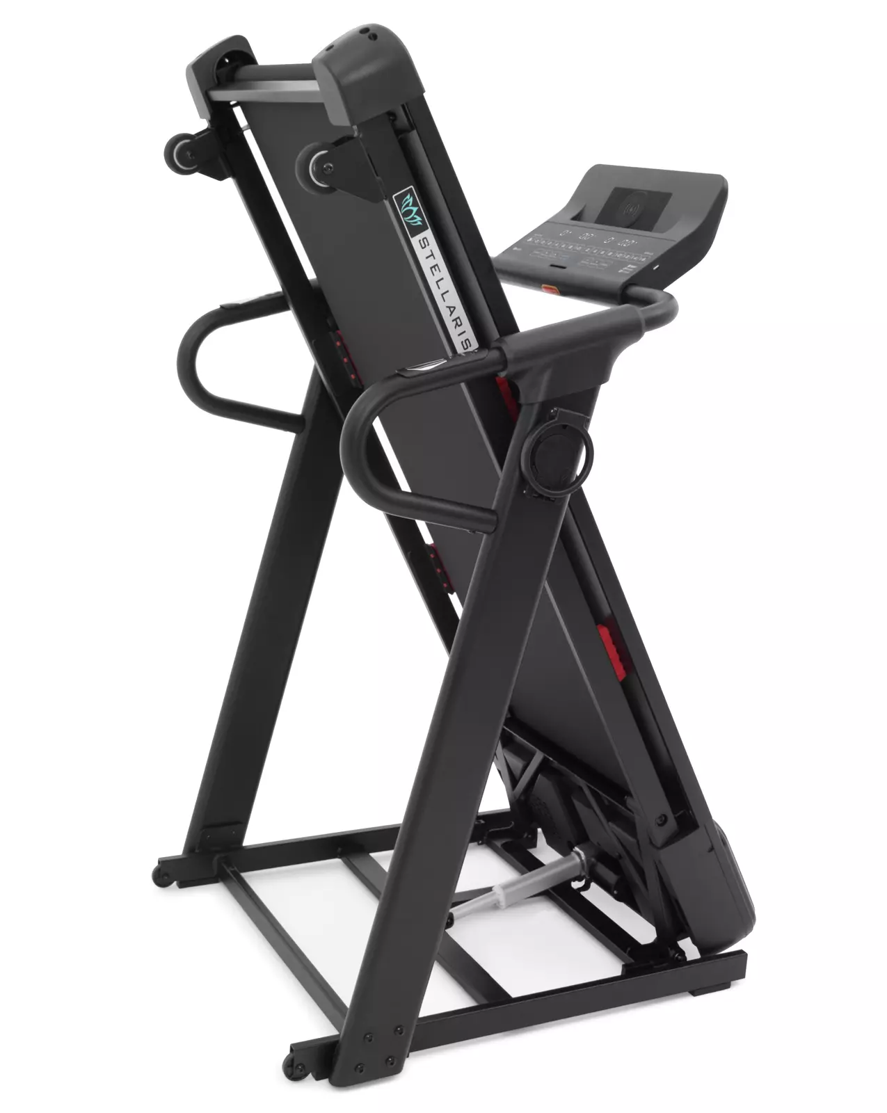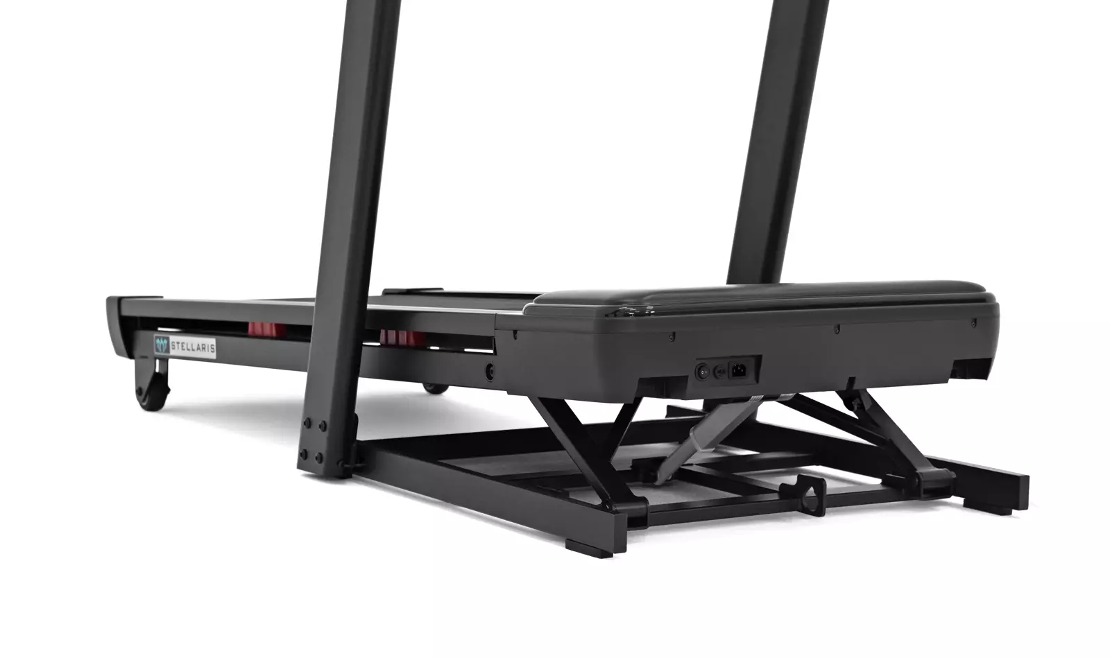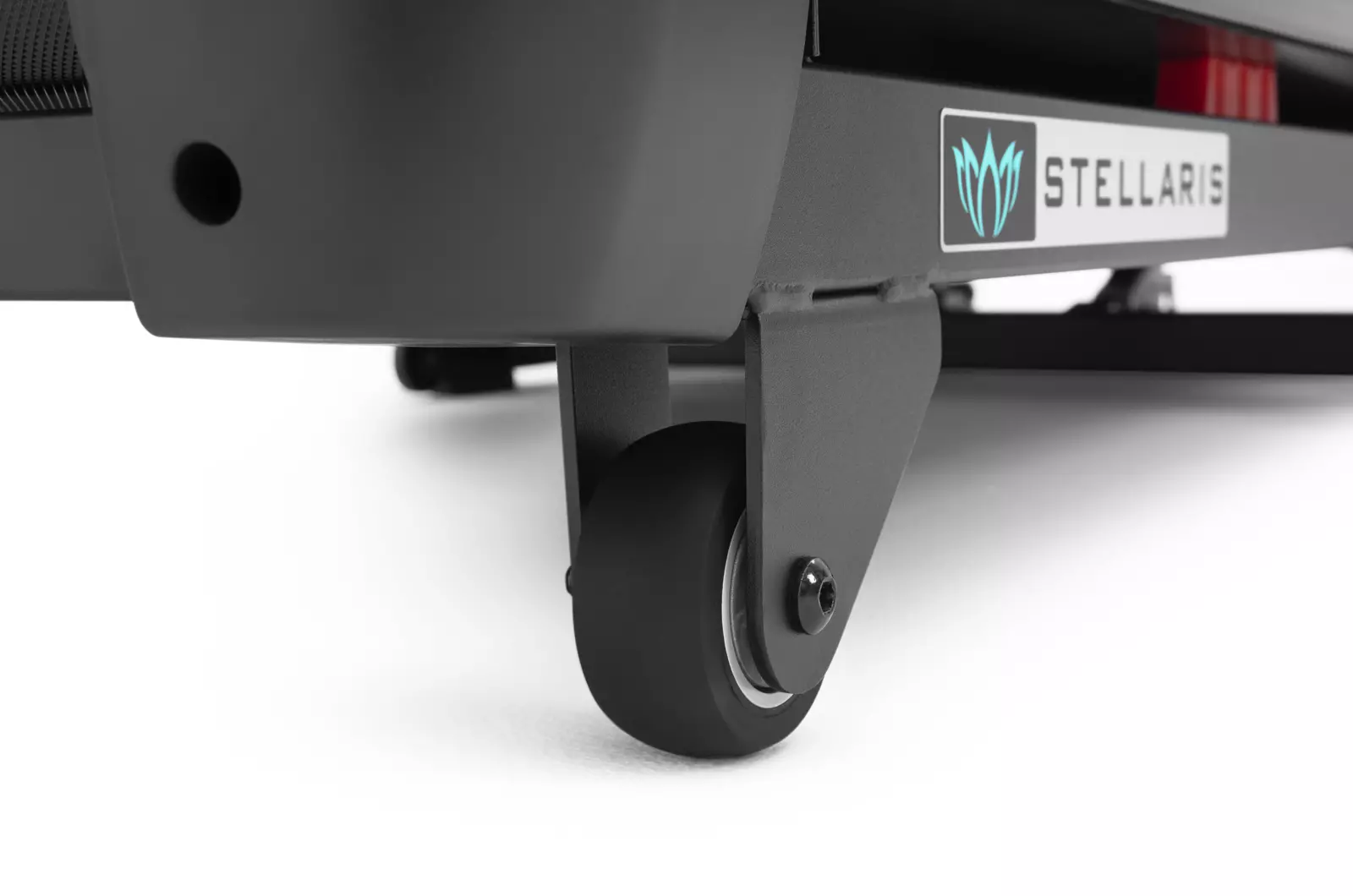 Aura Labs™ Stellaris от шведской Dynamatica – уникальный тренажер в том смысле, что тут есть все, что только можно собрать в одной беговой дорожке. Помимо мощного мотора и большой беговой зоны, здесь есть отрицательный угол наклона, система автоматического складывания, проводная и беспроводная зарядка телефона, Bluetooth™ передатчик пульса, подключаемые "по воздуху" приложения и музыка. Здесь есть даже двухфазный вентилятор.
