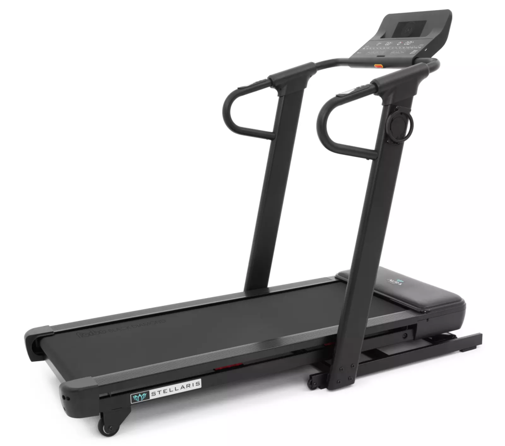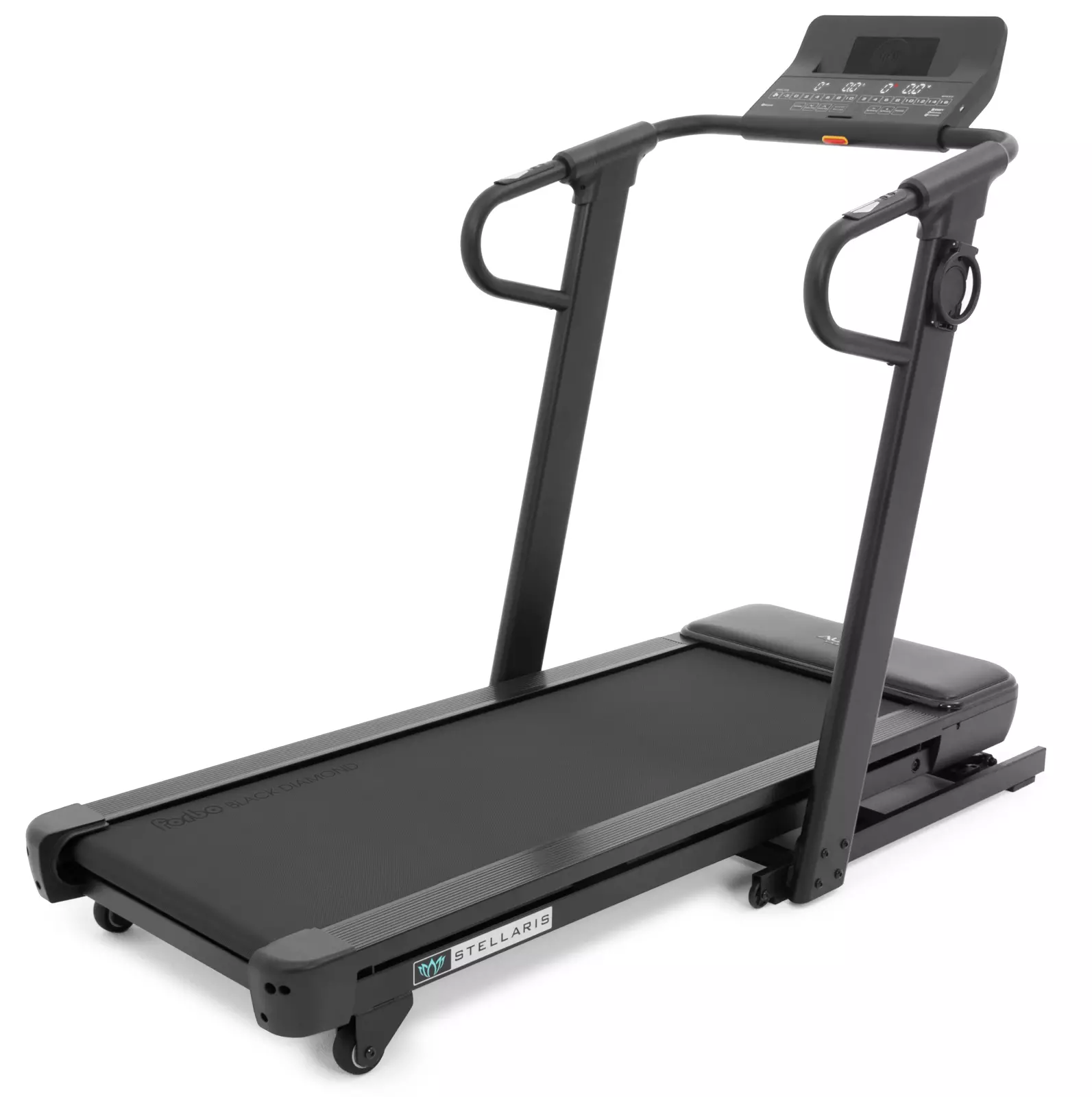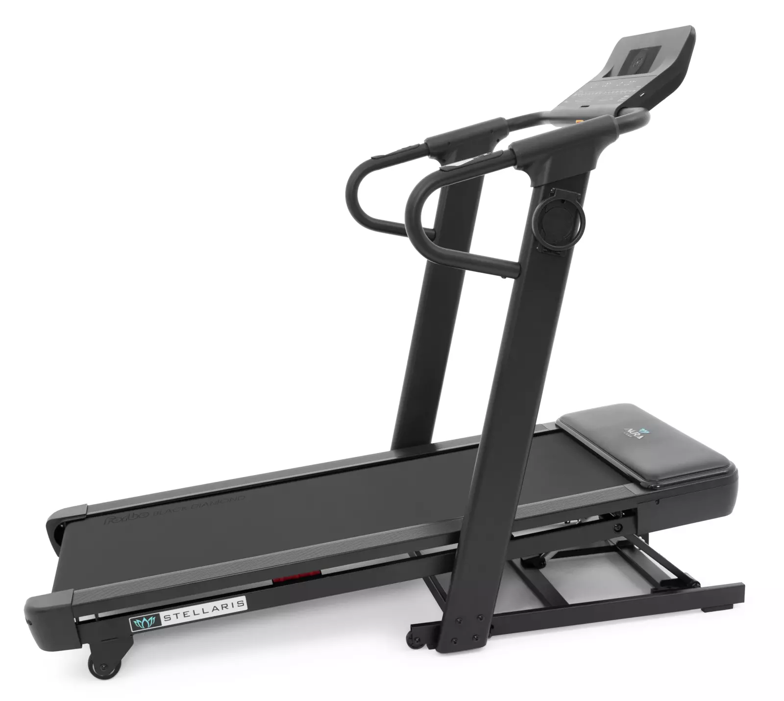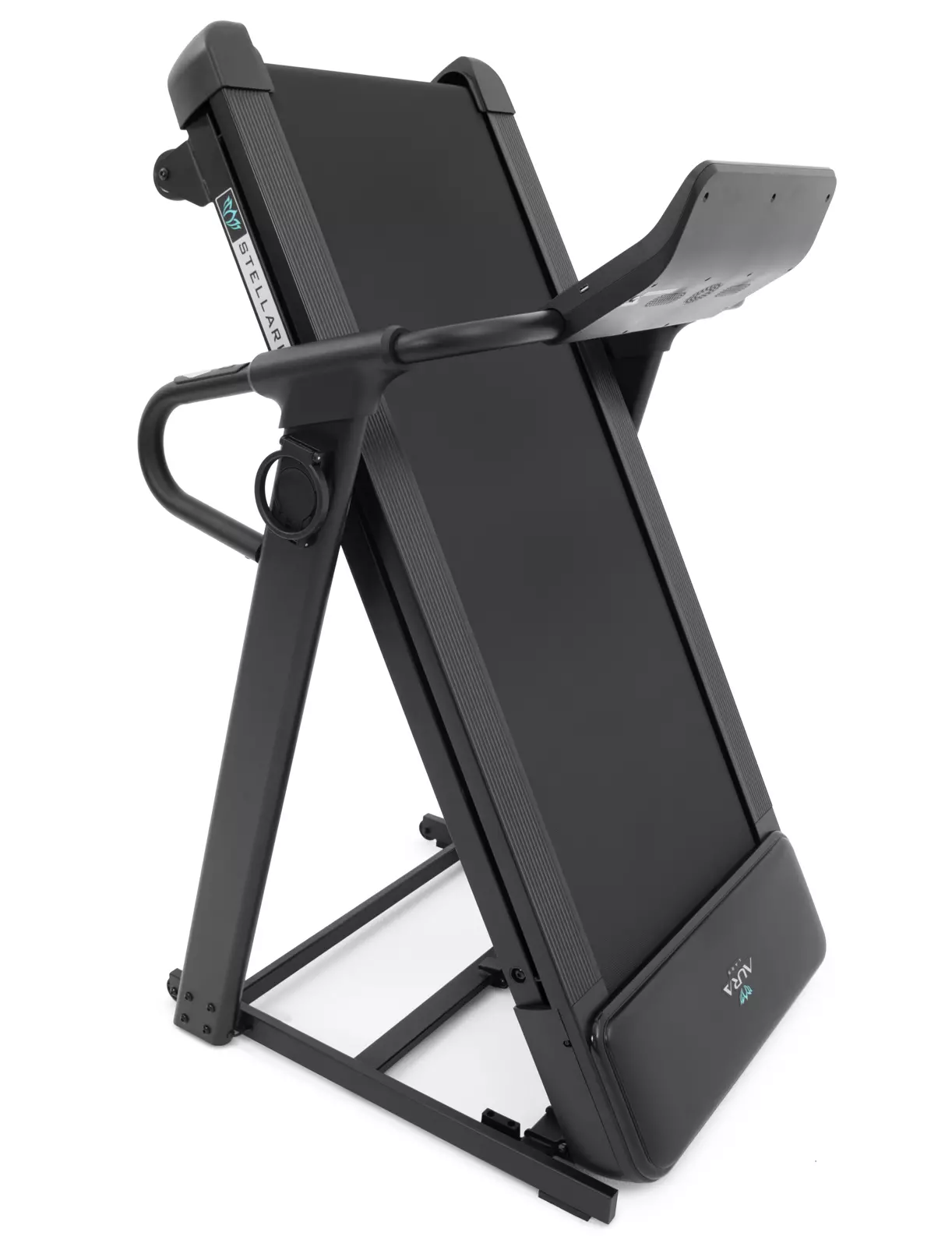 Aura Labs™ Stellaris от шведской Dynamatica – уникальный тренажер в том смысле, что тут есть все, что только можно собрать в одной беговой дорожке. Помимо мощного мотора и большой беговой зоны, здесь есть отрицательный угол наклона, система автоматического складывания, проводная и беспроводная зарядка телефона, Bluetooth™ передатчик пульса, подключаемые "по воздуху" приложения и музыка. Здесь есть даже двухфазный вентилятор.