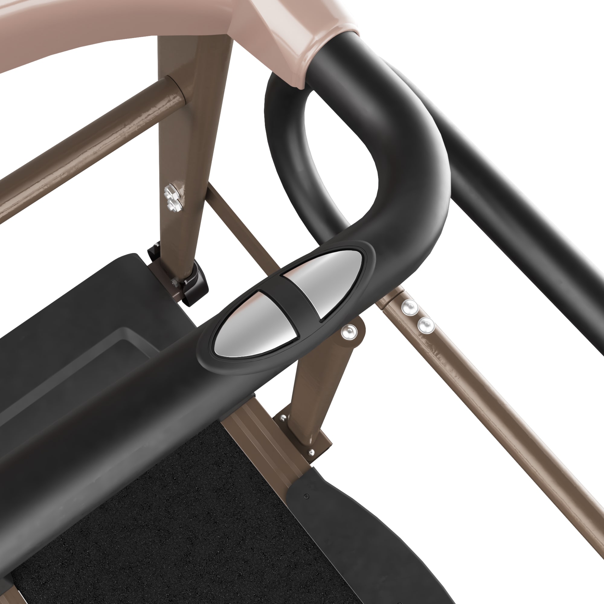 - Широкое беговое полотно. Беговую дорожку с высокими поручнями можно использовать в качестве тренажера для скандинавской ходьбы и тренажера для пожилых людей, который поможет сохранить физическую и кардио активность без вреда для здоровья. Широкое полотно 124 х 40 см, антискользящее покрытие и дополнительные усиленные поручни обеспечат комфортные и безопасные занятия после операций или травм. Максимальный вес пользователя – 140 кг. Гарантия на тренажёр – 2 года. - Пульсометры на поручне. На передних фиксированных поручнях реабилитационного тренажера расположены пульсометры, они позволяют следить за сердцебиением пользователя во время тренировки, данные выводятся на дисплей. Удерживайте датчики пульса (расположенные на ручках) обеими руками в течение 5 секунд, чтобы рассчитать и отобразить количество сердечных сокращений в минуту (уд/мин) на экране компьютера. Высокие поручни по бокам отличаются повышенной прочностью, поскольку принимают большую нагрузку от веса пациента, который на них опирается.
