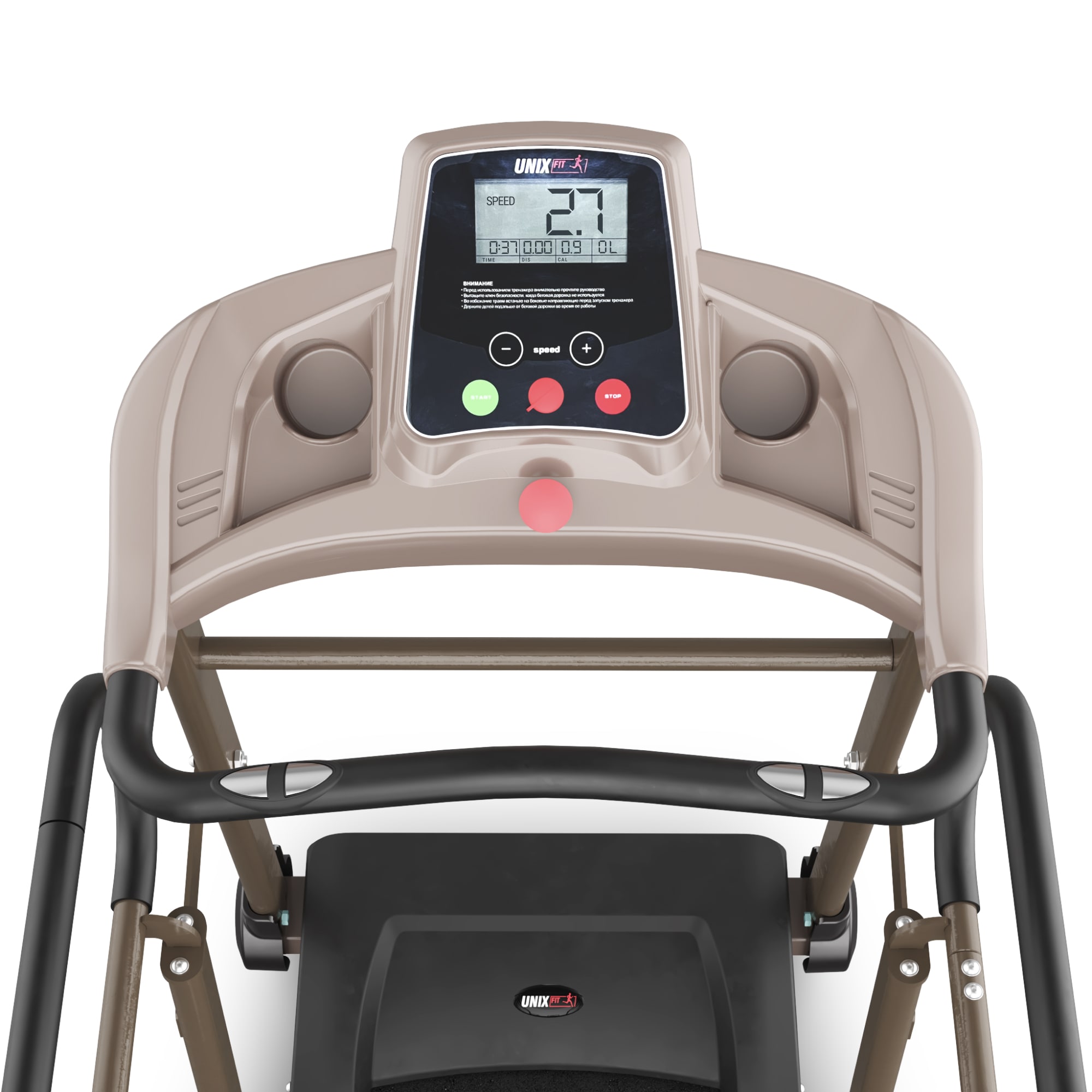 Назначение Для реабилитации Цвет Коричневый Рама особопрочная с двухслойной покраской Коврик под дорожку есть, шумопоглощающий Размер коврика, см 190 х 75 Скорость (км/ч) 0,32 - 8 (шаг 0,1) Двигатель 1.75 л.с. Shlümdenger Electric (постоянный ток DC) Пиковая мощность двигателя (л.с.) 2,5 Система охлаждения двигателя есть (воздушное) Уровень шума двигателя низкий (система шумоподавления Smartex) Беговое полотно ортопедическое антискользящее беговое полотно ORTOMAX™ Размер бегового полотна (см) 124 х 40 Регулировка угла наклона отсутствует Система амортизации есть Измерение пульса сенсорные датчики на поручнях Консоль LCD дисплей Показания консоли время, скорость, дистанция, калории, пульс Дополнительные Быстрый старт. Напоминание о смазке. Функция энергосбережения. Подставка для бутылки есть (2 кармана) Инструкция по сборке есть (на русском языке) Транспортировочные ролики есть Инструмент для сборки в комплекте Система смазки бегового полотна ручная Компенсаторы неровности пола есть Размер упаковки в см (Д*Ш*В) 177 х 74 х 28 Размер в рабочем состоянии в см (Д*Ш*В) 157 х 75,6 х 129 Вес нетто (кг) 62 Вес брутто (кг) 77 Максимальный вес пользователя (кг) 140 Питание сеть 220 Вольт Объем упаковки (м³) 0,365 Энергосбережение есть (класс А+) Гарантия на раму 2 года Гарантия 1 год Сертификаты CE, RoHS Производитель UNIX Fit™ ® Страна изготовления КНР