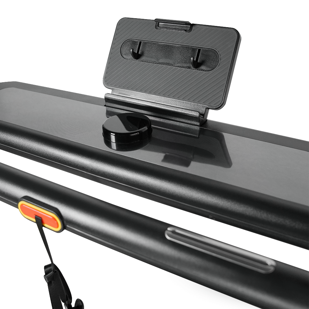 Беговая дорожка MERACH MR-T07 имеет складную конструкцию, что облегчает её хранение и перемещение благодаря транспортировочным роликам. Удобная подставка для планшета или смартфона позволяет заниматься с любимыми развлечениями, а USB-разъем для зарядки устройства обеспечивает дополнительный комфорт. Также предусмотрены сенсорные датчики на поручнях для измерения пульса, что позволяет контролировать состояние во время тренировки.