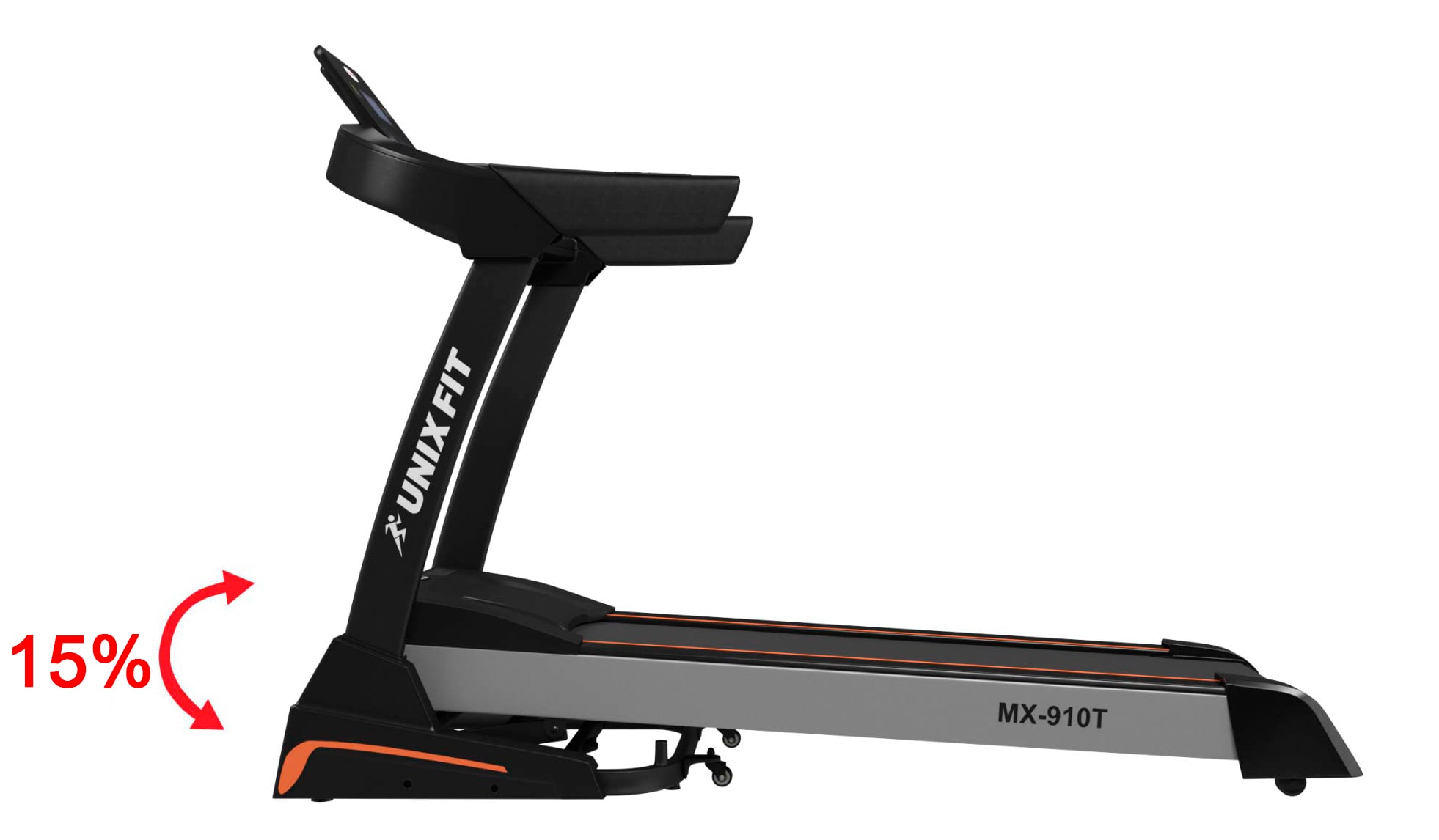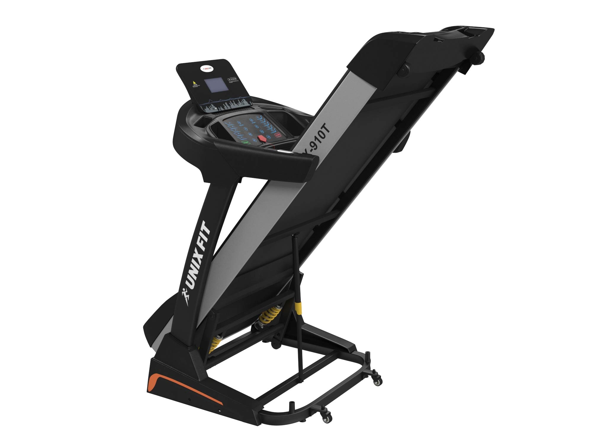 Беговая дорожка UNIXFIT™ MX-910T это все основные возможности профессионального тренажера у вас дома. Увеличенная толщина деки, мощный двигатель 3.5 л.с. (Shlümdenger Electric) и внушительные размеры бегового полотна позволят ощутить комфорт в движении и получать удовольствие от каждой тренировки, 12 плоских эластомеров и 2 амортизатора снизят нагрузку на позвоночник и суставы.