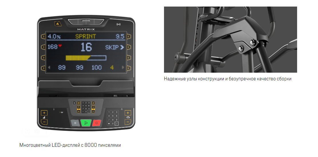 Запатентованная конструкция подвески снижает шум и трение, продлевая срок службы тренажера и делая при этом каждое движение на нем плавным и естественным, благодаря постоянной величине ускорения и идеальной эргономике.