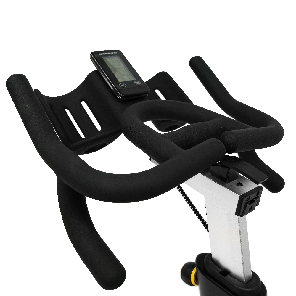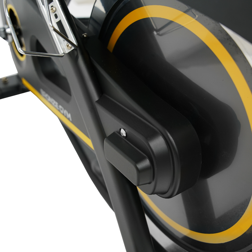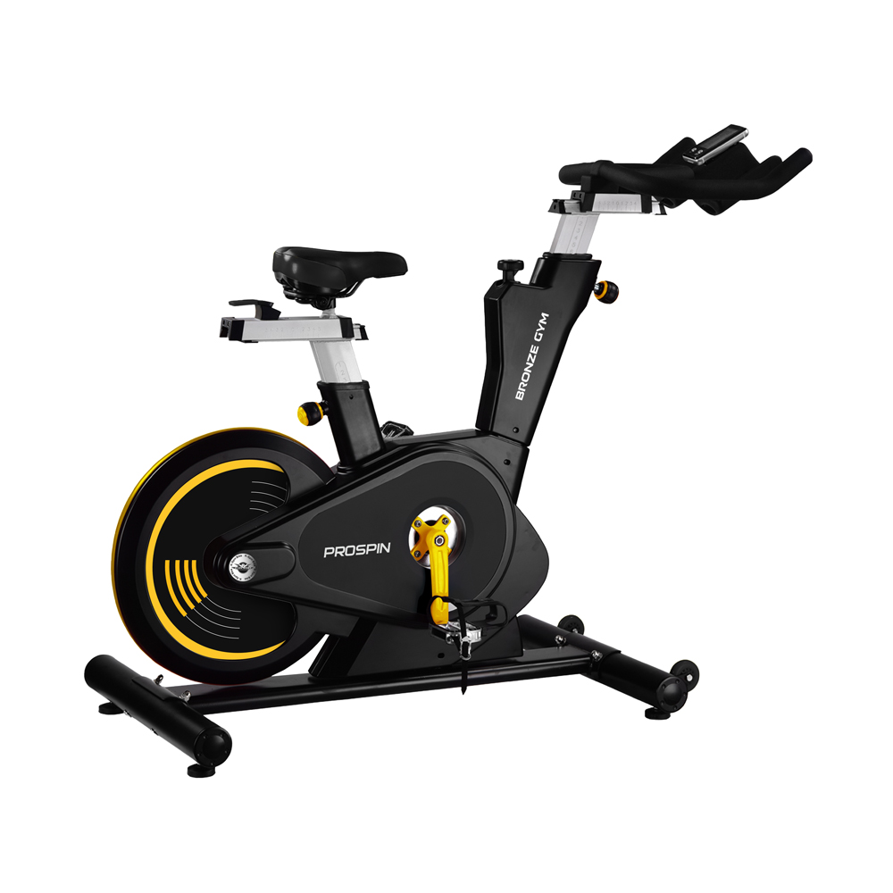 Само сиденье наполнено плотными подушками, выполнено в эргономичной форме и аналогично тем сидениям, который используются на спортивных велосипедах. К числу других преимуществ BRONZE GYM PROSPIN относятся быстро настраиваемые компенсаторы неровностей пола, износостойкие полиуретановые транспортировочные ролики и держатель для бутылки.