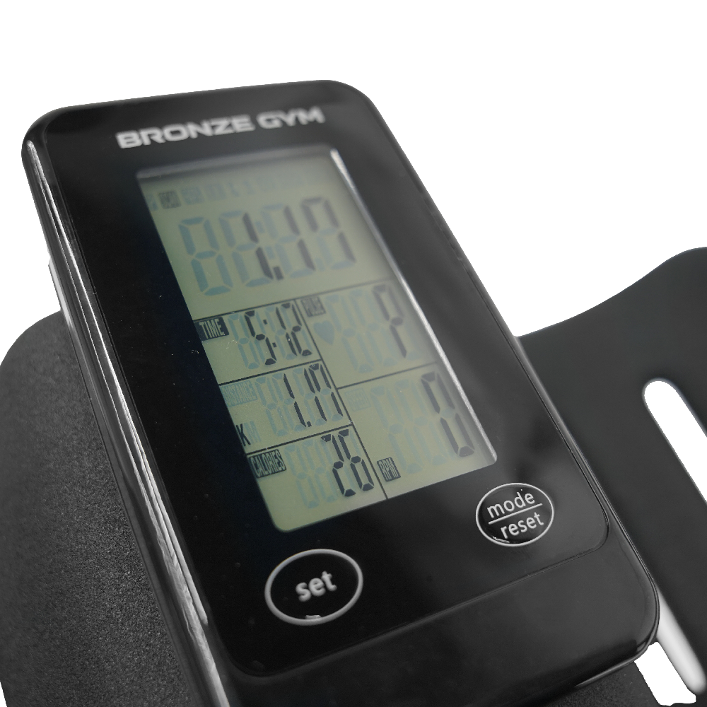 Встроенный приемник для беспроводной передачи частоты сердечного ритма, частота которого составляет 5 кГц, необходим нагрудный датчик (приобретается отдельно) BRONZE GYM PROSPIN отлично проходит так называемый "Тест на 6 часов" (проверка равномерности распределения нагрузки при педалировании, проводится в положении стоя; как правило, большинство спин-байков "проваливаются" (скорость увеличивается, нагрузка падает) при движении шатуна из верхнего положения в нижнее).