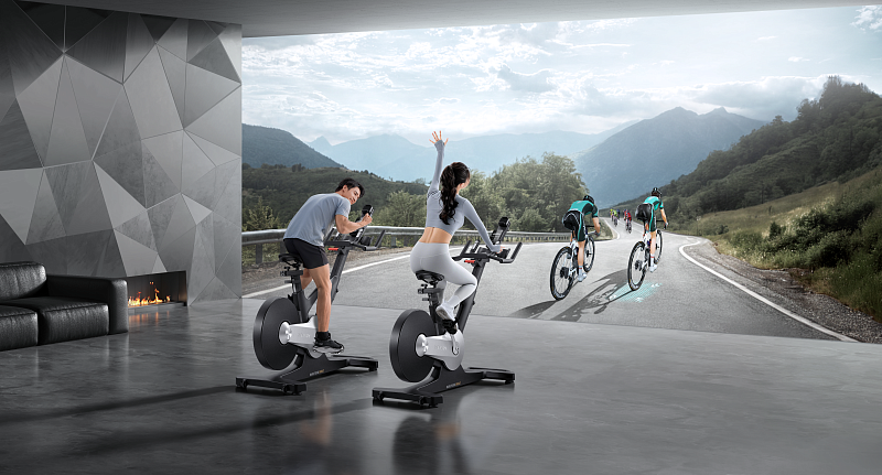 - Тяжёлый маховик весом 18 кг и 32 уровня электронной регулировки сопротивления обеспечивают реалистичное ощущение езды — от лёгкой прогулки до интенсивной тренировки.