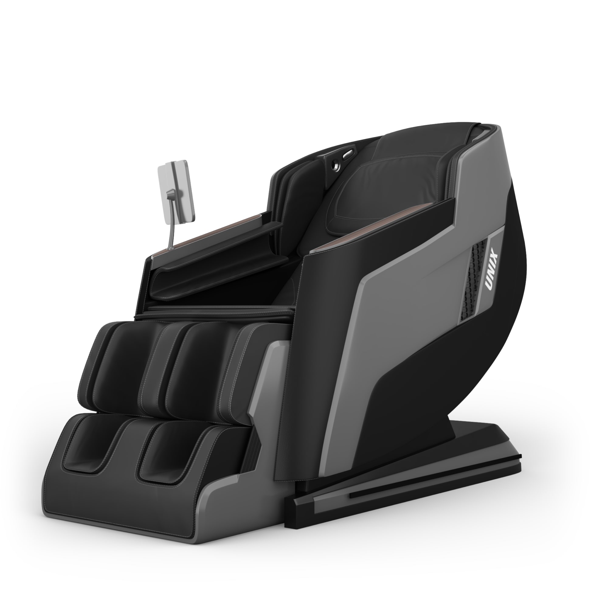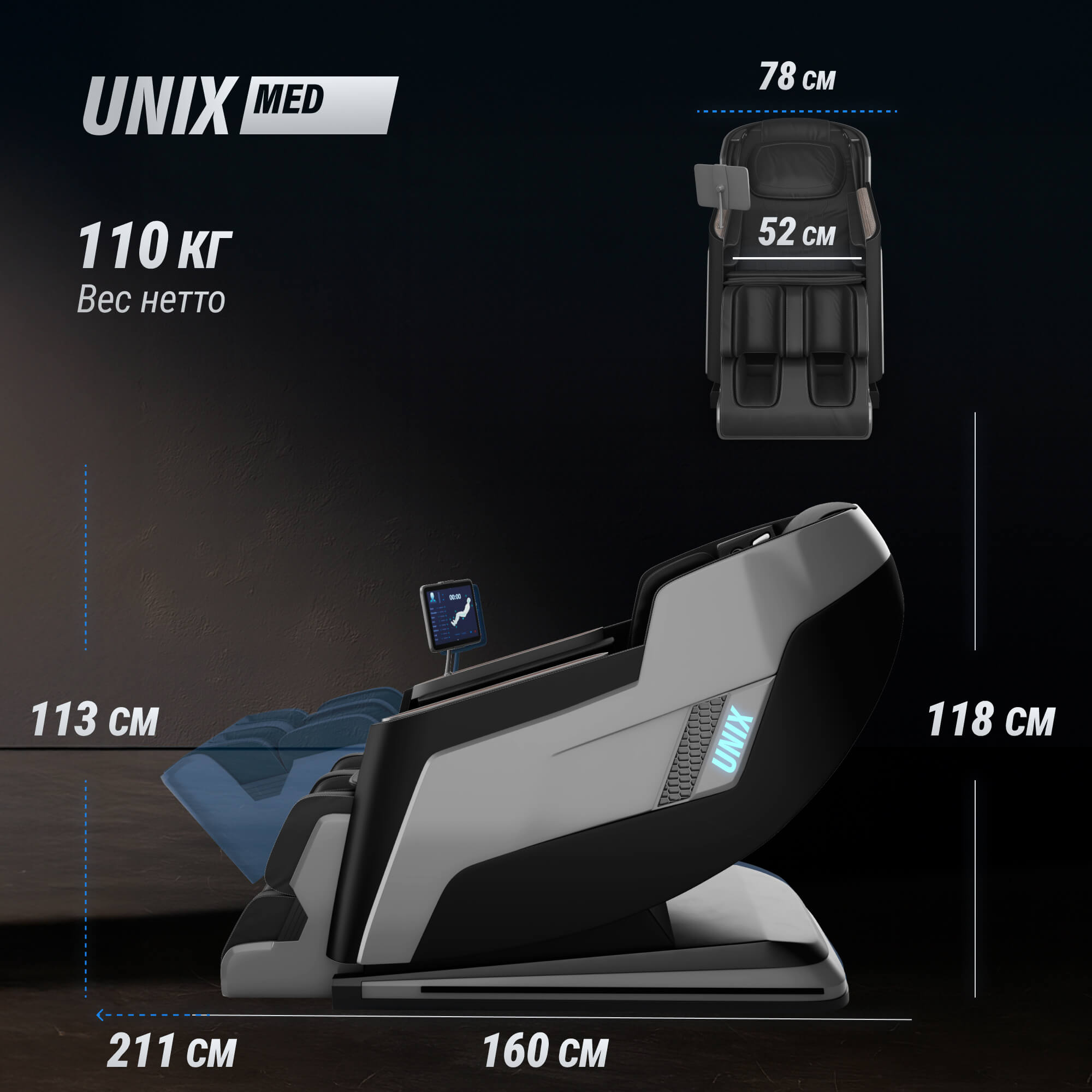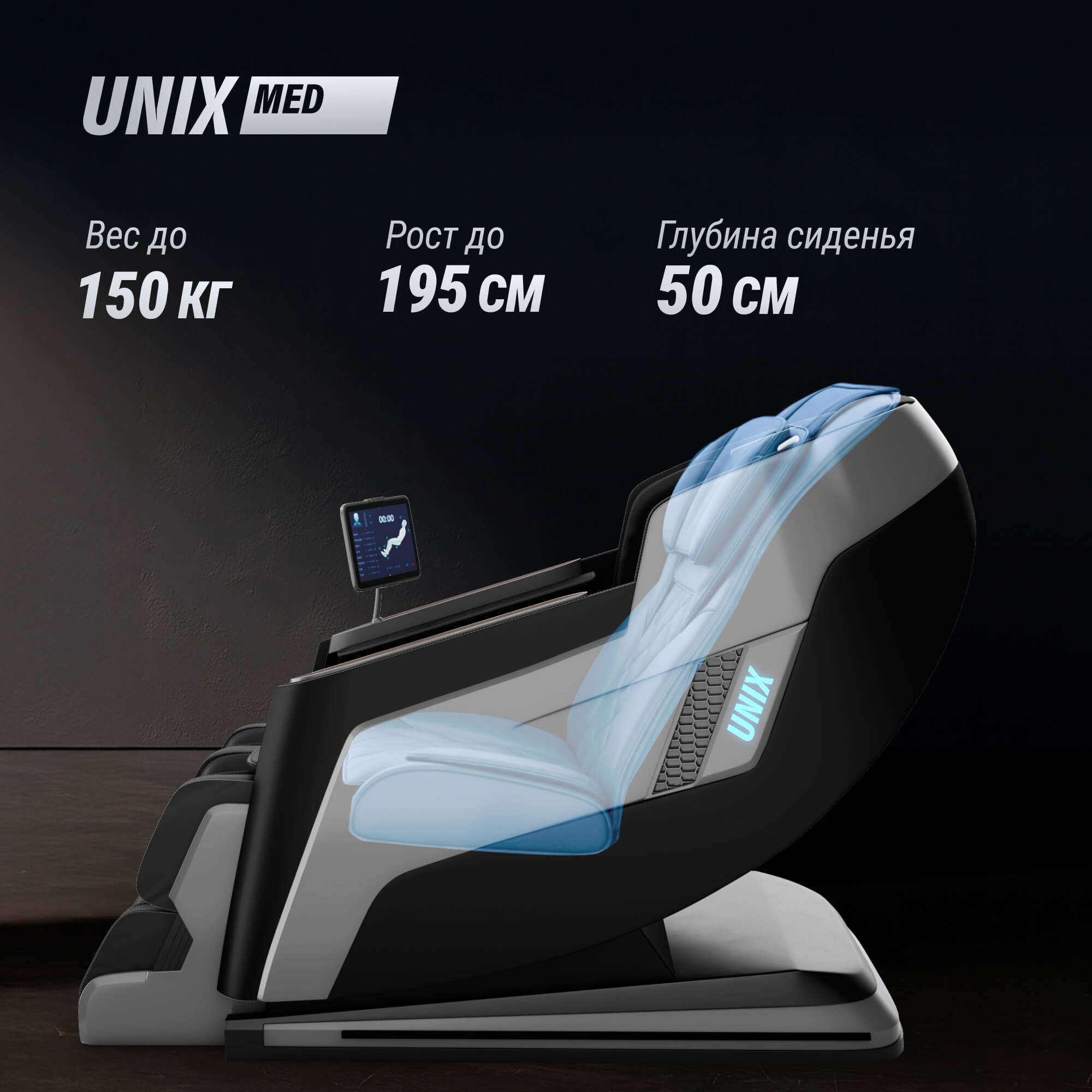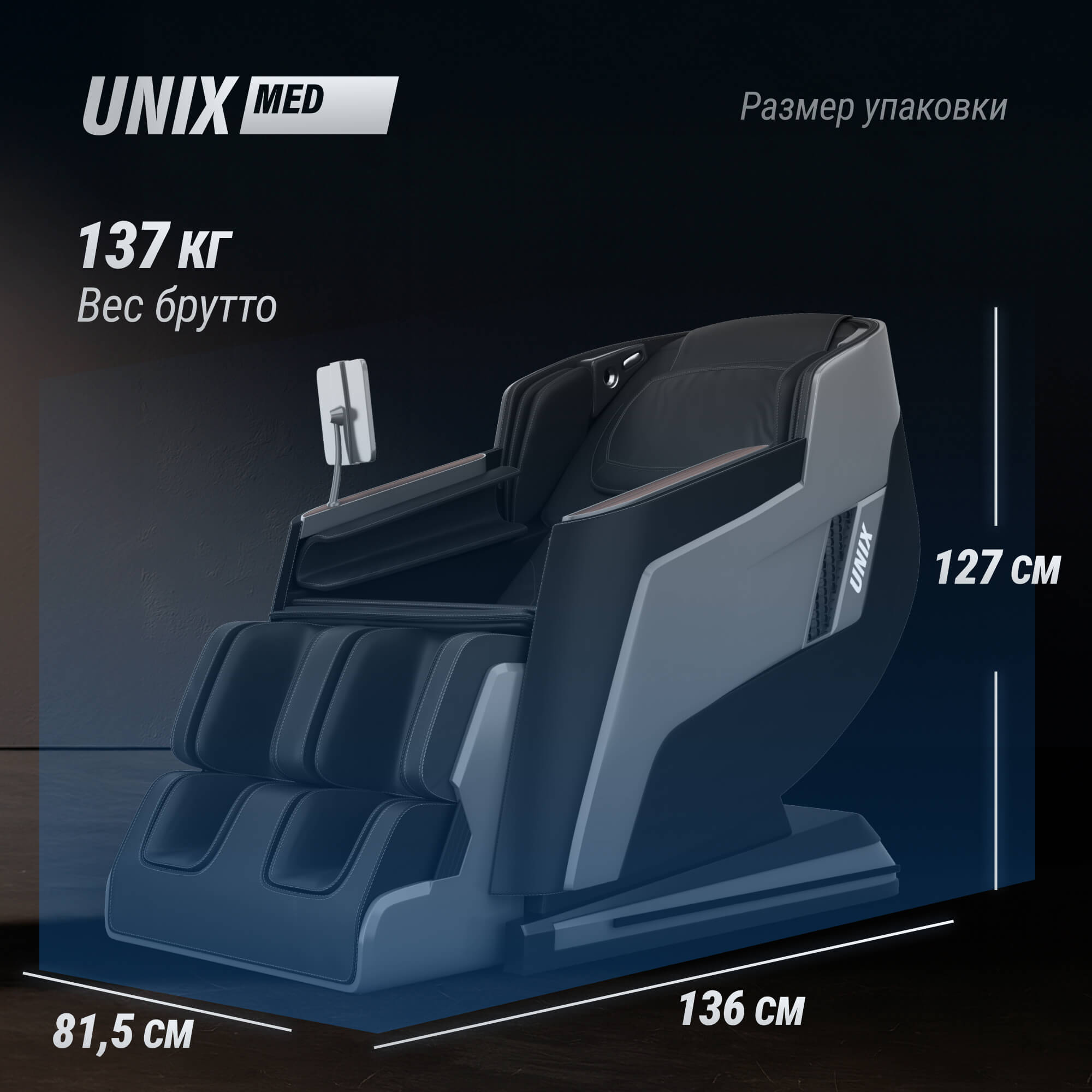 Воздушно-компрессионные подушки делают массаж ног, икроножных мышц и рук. Они подстраиваются под вашу анатомию, что поможет быстрее снять неприятные ощущения. В массажном кресле UNIX Med предусмотрена функция роликового массажа ног и массажера для икроножных мышц.
