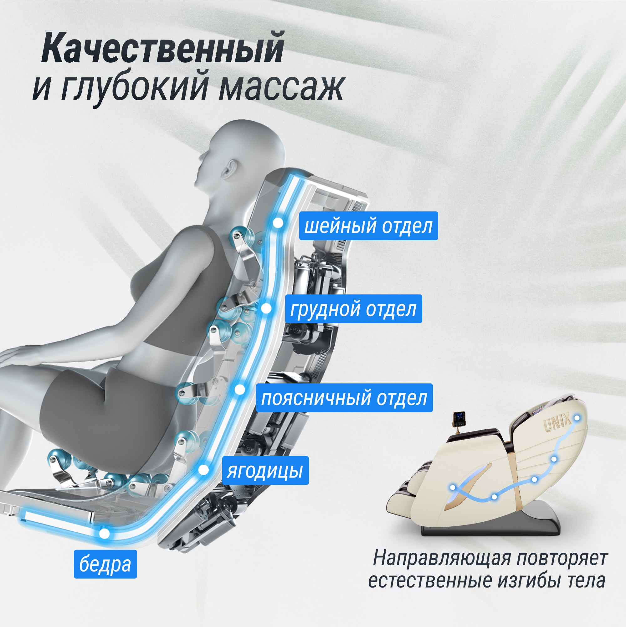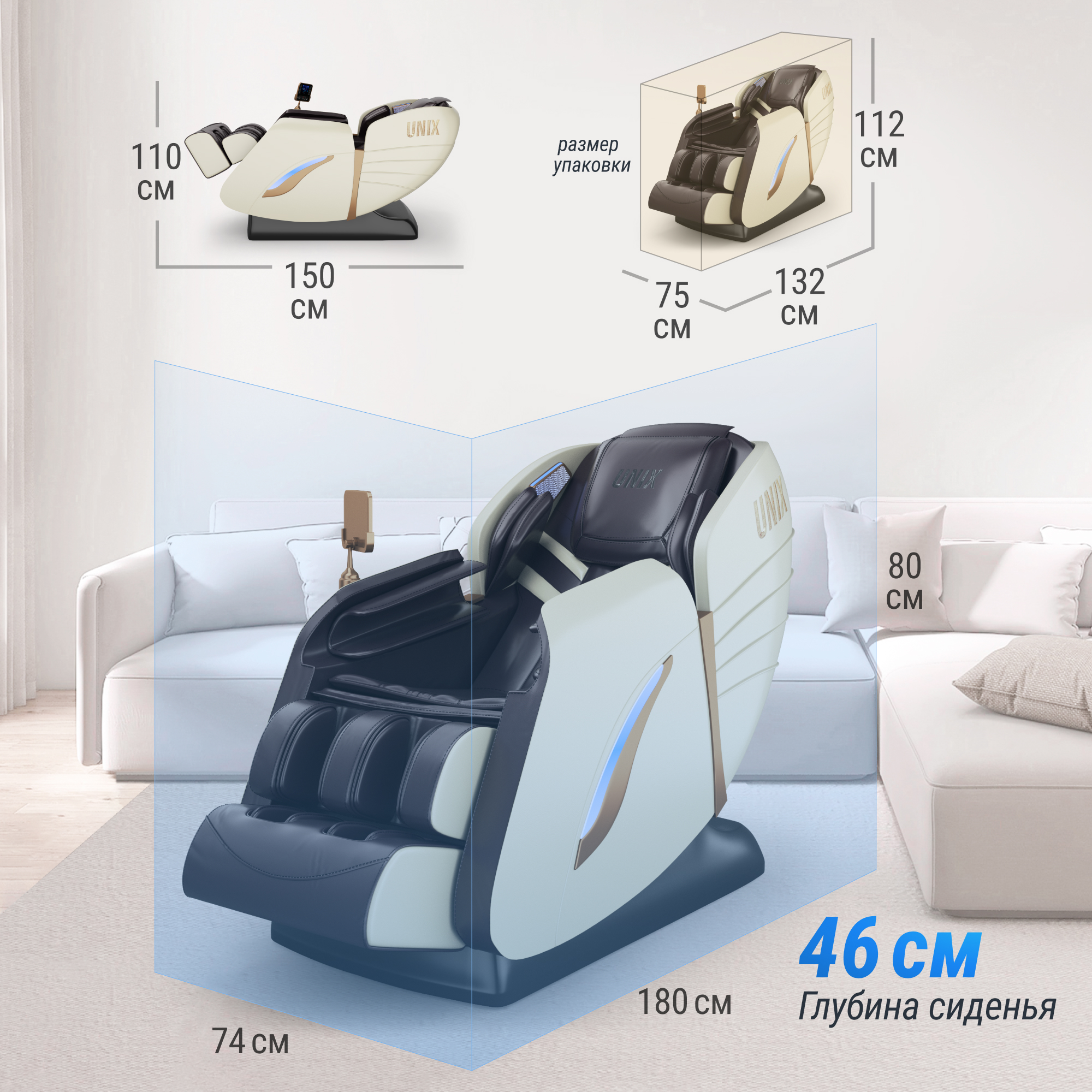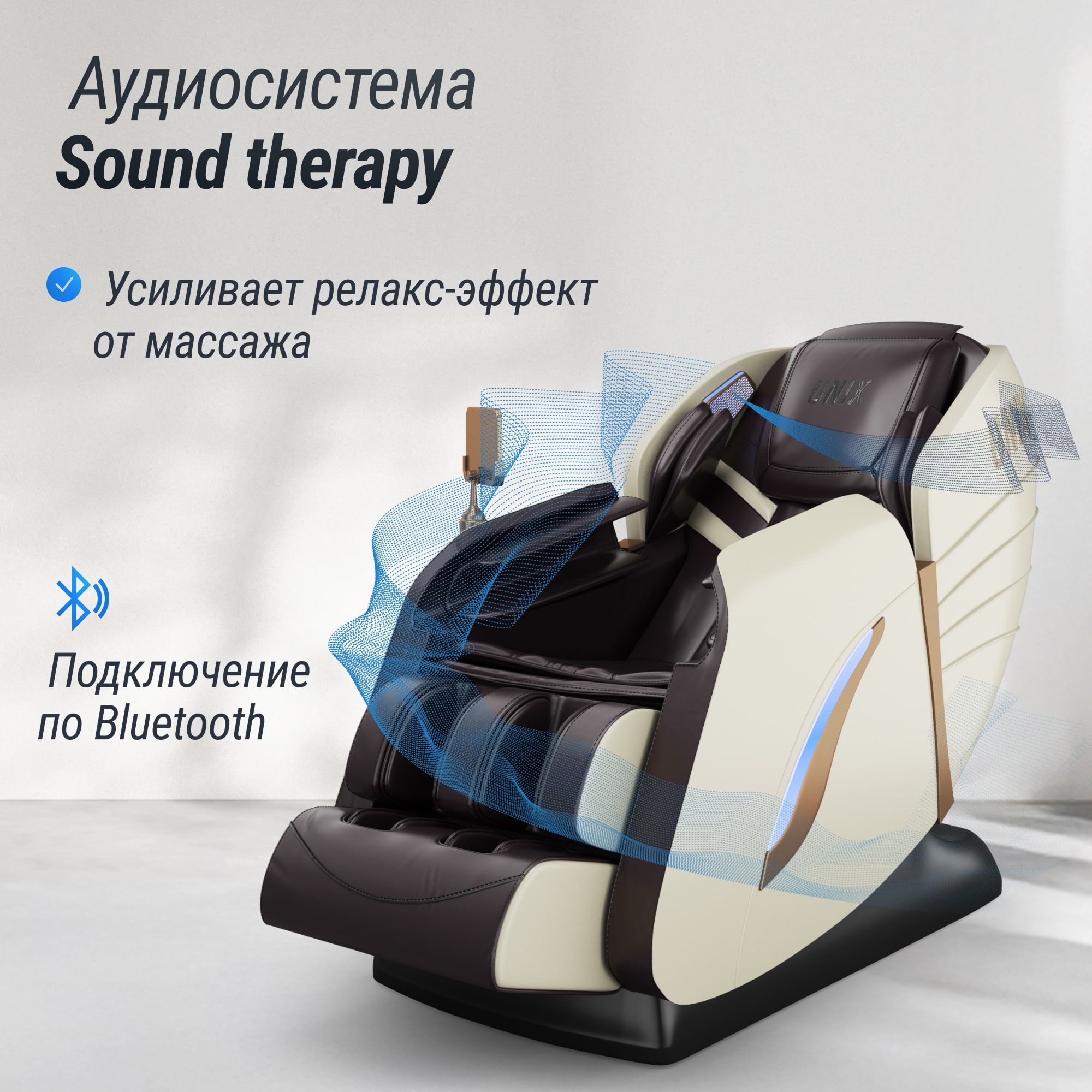 - Встроенные динамики позволят во время массажа слушать любимую музыку через Bluetooth со звуком Hi-Fi. Кресло позволяет синхронизировать вашу любимую музыку с массажным механизмом. Расслабьтесь под свою любимую музыку и получайте удовольствие с массажным креслом UNIX Med. Встроенная функция Bluetooth позволяет подключать ваше устройство и наслаждаться любимыми мелодиями или расслабляющими звуками природы во время массажа спины, ШВЗ (шейно-воротниковой зоны) или массажа ног. Создайте дома идеальную атмосферу для отдыха и восстановления сил!