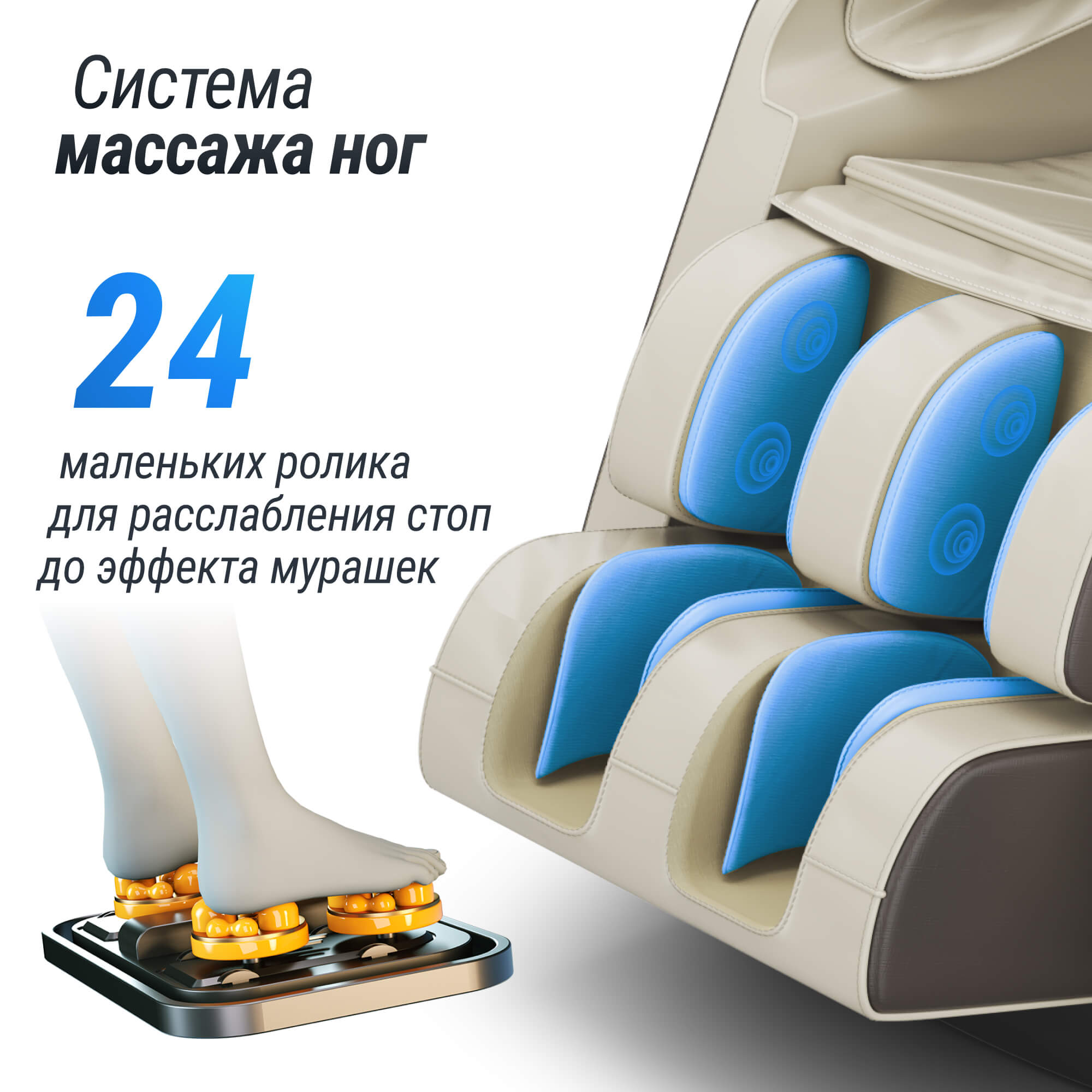 | Количество массажных роликов | 8 в зоне спины + 22 для поясницы + 6 для ягодиц + 24 для стоп |