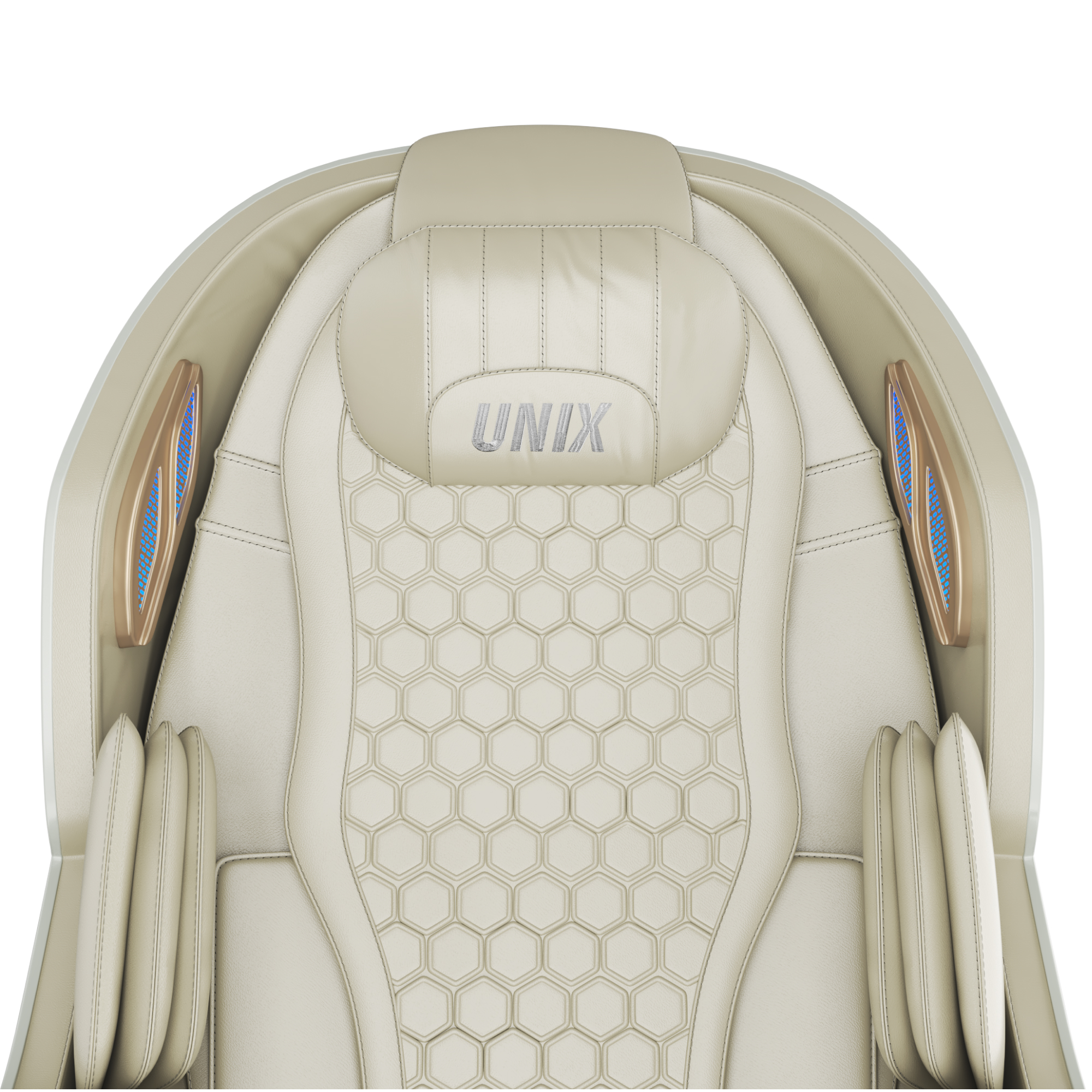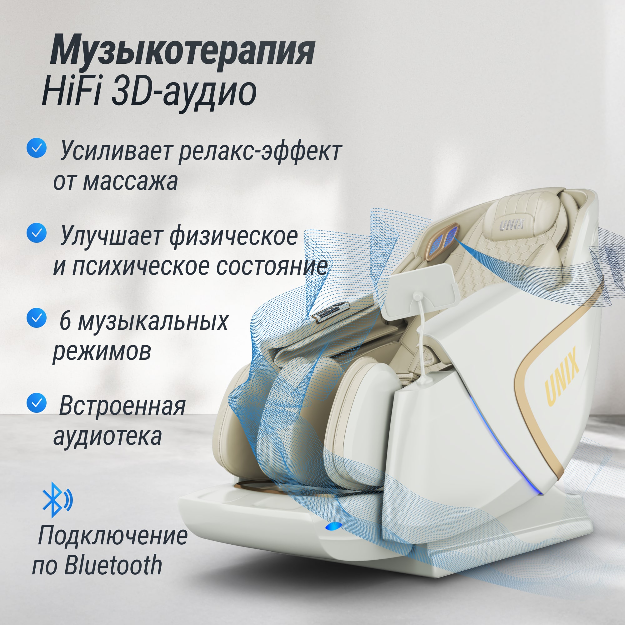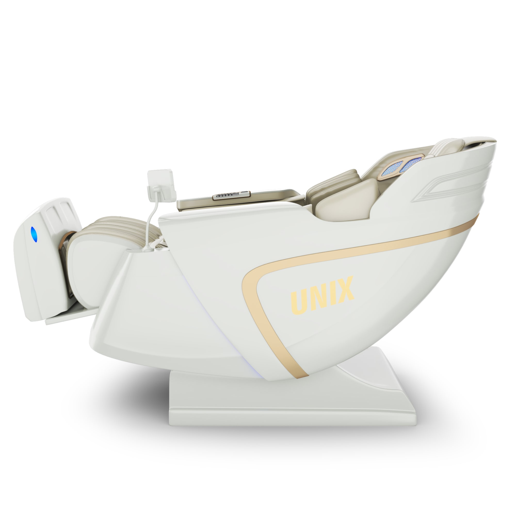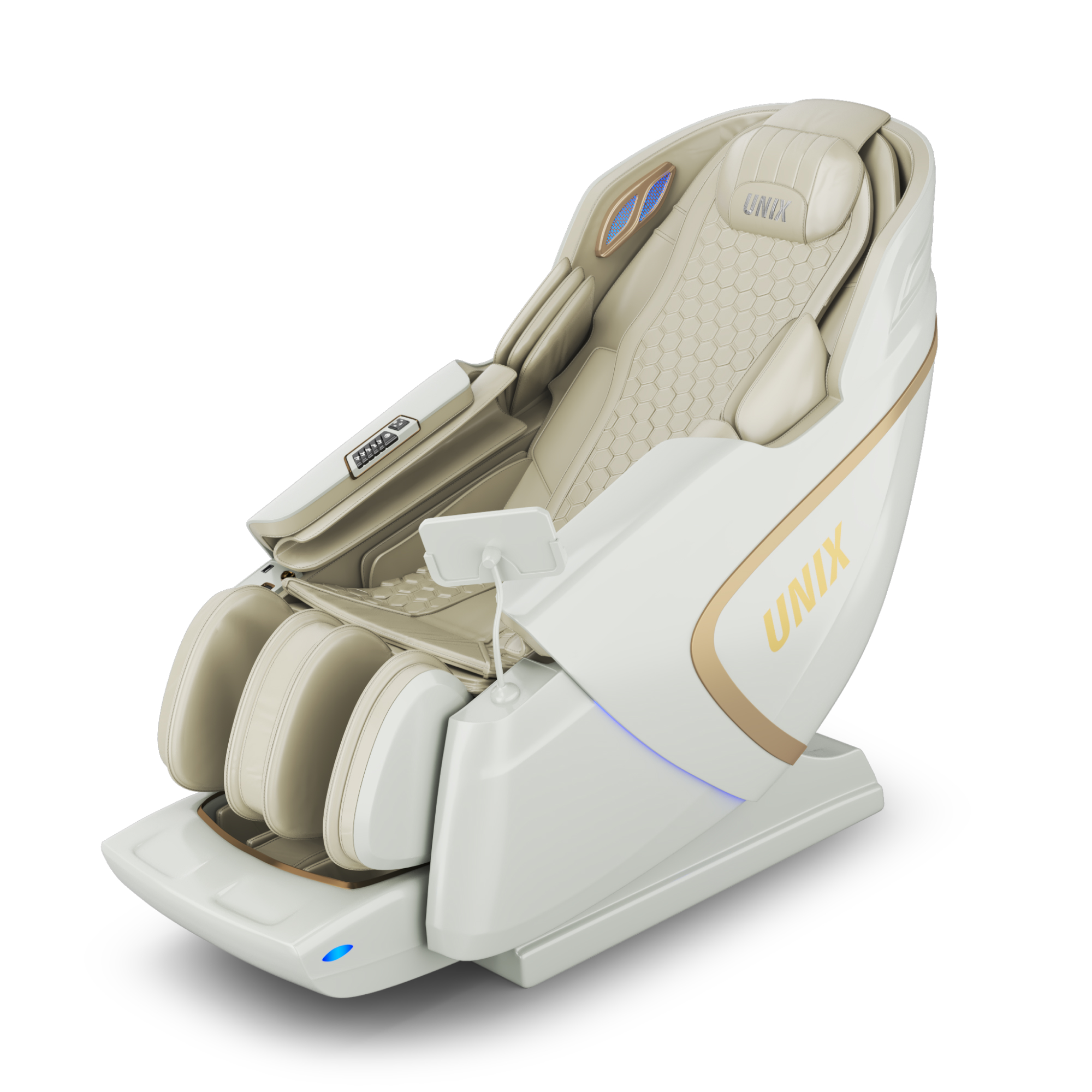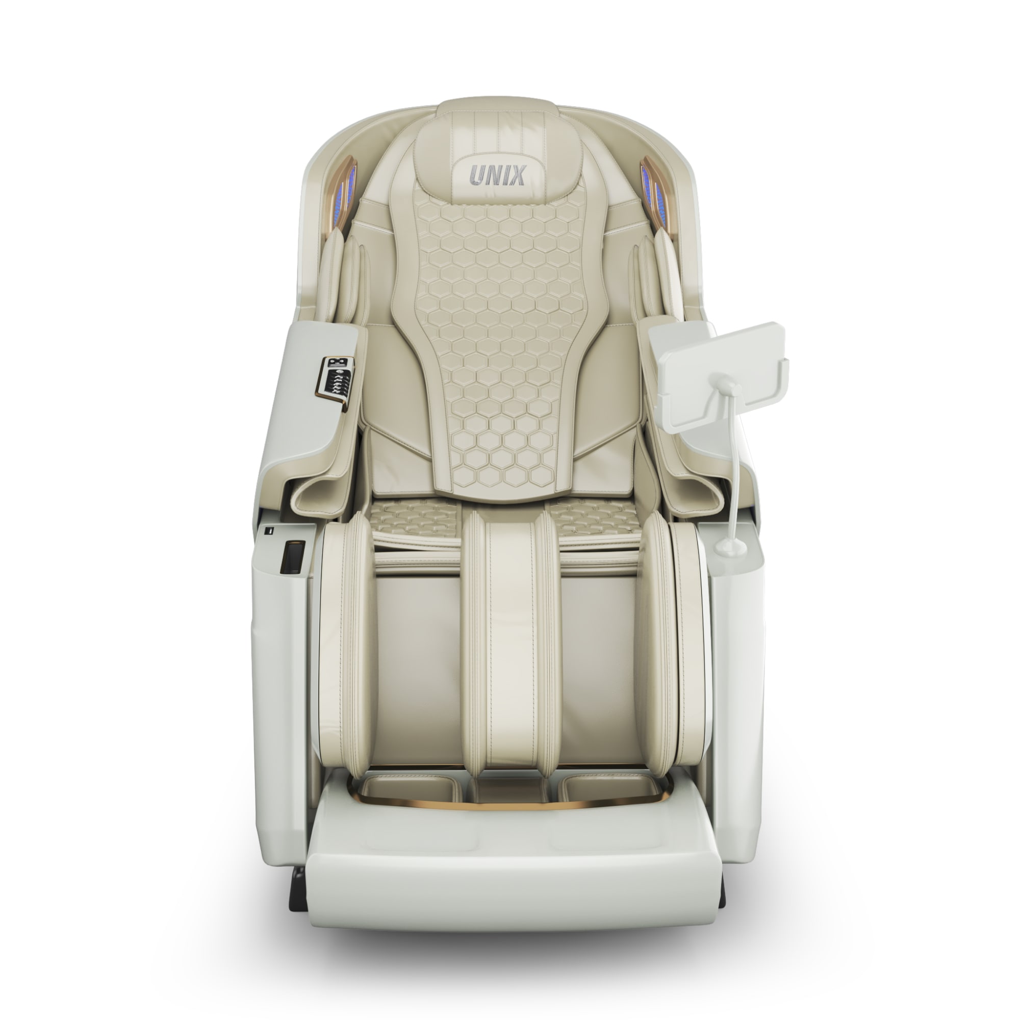 Откройте для себя новое измерение комфорта и заботы о здоровье с революционным массажным креслом UNIX Aura, оборудованным передовыми технологиями 4D манипулятора и датчиками анализа здоровья. Это не просто массажное кресло — это ваш личный терапевт, который всегда готов прийти на помощь. Каркас спинки в лежачем положении выполнен по технологии скользящего рельса, что позволяет разместить изделие всего в 10 см от стены, максимально экономя пространство.