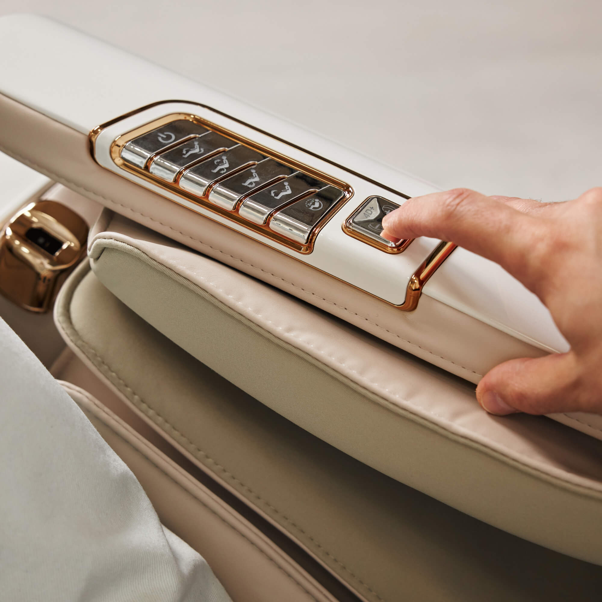 - Управляйте с легкостью! Интуитивно понятный сенсорный пульт управления в виде планшета с кнопками быстрого управления и голосовой системой управления Al располагается на подлокотнике. Массажное кресло оснащено поворотным переключателем для управления программами массажа, регулировкой интенсивности массажа; регулировкой подъема голеней, спинки; регулировкой угла наклона кресла в режиме Zero Gravity. Функция памяти для 6 пользователей и прочие данные о режиме массажа. Настройки позволяют отрегулировать общие параметры устройства в соответствии с потребностями пользователя массажного кресла: время массажа, звук кнопок, подсветка, Bluetooth, язык. Широкий диапазон изменения уровня давления и времени поможет настроить массажный механизм под свои потребности.