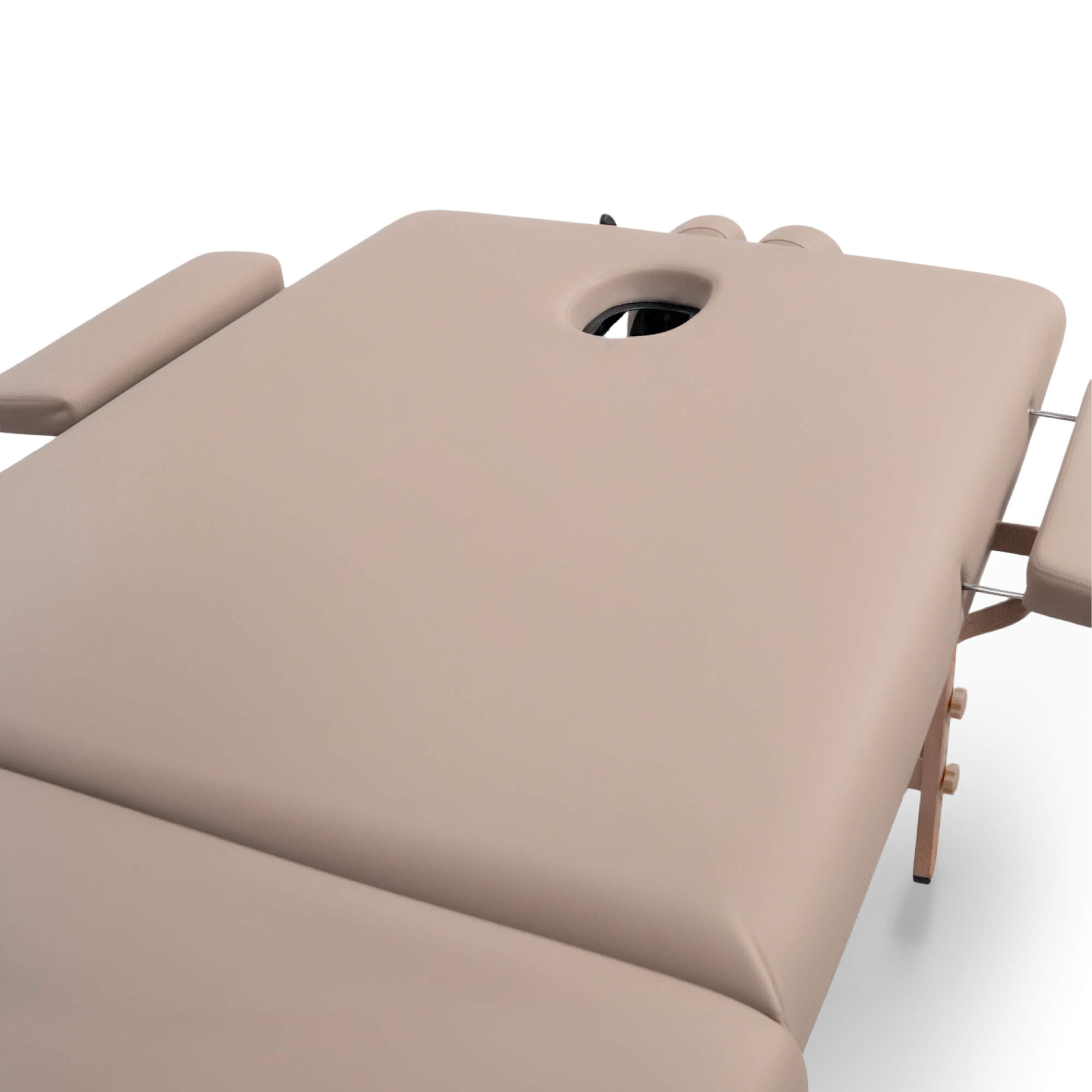 Уход за столом прост и удобен. Обивку можно ежедневно чистить мягким моющим средством и теплой водой, после чего протирать сухой тряпочкой без ворса. Каркас стола не нуждается в особом уходе. Конструктивные особенности стола направлены на обеспечение легкого доступа ко всем зонам тела клиента, что способствует максимальной эффективности процедур. Анатомически правильное расположение отверстий и подголовников снижает напряжение и усталость мышц клиента.
