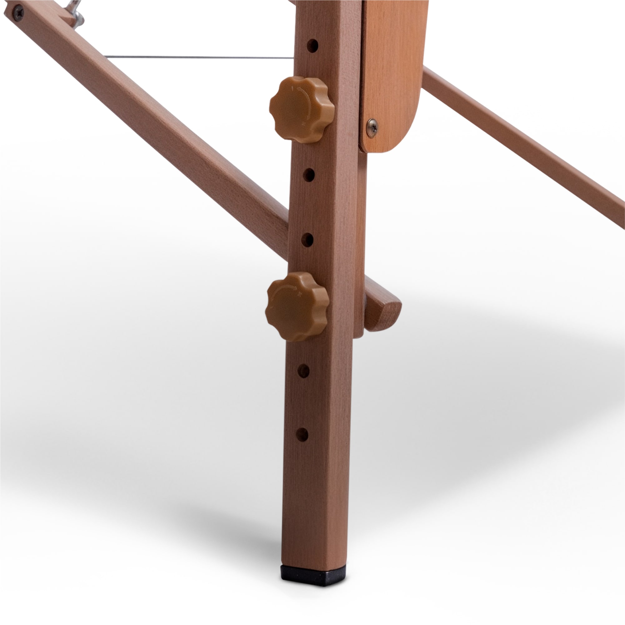 Деревянная кушетка для массажа выделяется невероятно прочной конструкцией, способной выдержать общую нагрузку до 250 кг (не перегружайте стол сверх рекомендованного предела веса). Благодаря своим компактным размерам он идеально впишется даже в самые небольшие помещения, будь то СПА-салон, домашний кабинет или офис. Возможность ручной регулировки высоты ножек от 60 до 81 см с шагом 3 см позволяет адаптировать стол под рост массажиста, обеспечивая наилучшую результативность сеансов массажа. Ложе толщиной 6 см обеспечит дополнительную поддержку и комфорт. Для еще большего удобства массажного стола в комплекте предусмотрены регулируемый по наклону и высоте подголовник и подставка для гаджетов, расположенная у изголовья, а также боковые подлокотники.