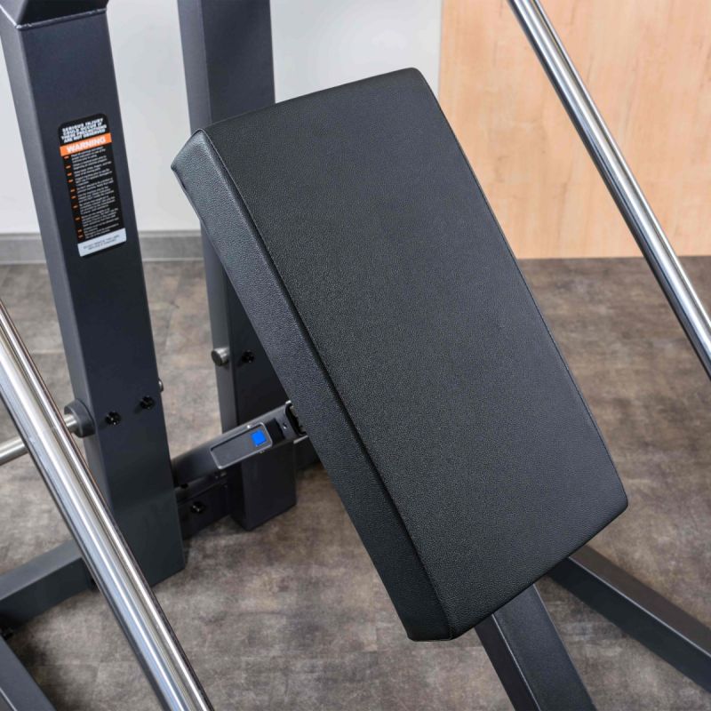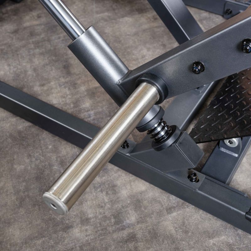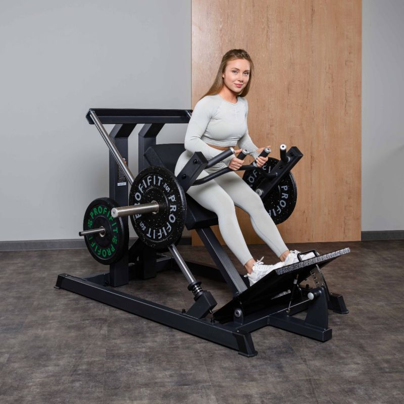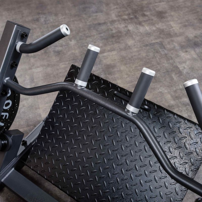 Тренажер Наклонная тяга к поясу предназначен для выполнения одноименного упражнения по заданной траектории. Во время базового упражнения задействуются несколько крупных мышечных групп: целевыми выступают широчайшие и подостные мышцы, дополнительно в работу включаются разгибатели позвоночника, задние дельты, трапециевидные, ромбовидные мышцы, длиннейшие мышцы груди, бицепсы и другие мышцы плечевого пояса. Тягу к поясу можно выполнять при помощи штанги или гантелей, но именно тренажер позволит придерживаться заданной траектории и соблюдать правильную технику, что очень важно при выполнении многосуставного упражнения, когда высок риск получить травму или сместить акцент на нецелевые мышцы. За счёт исходного положения рычага снижена стартовая нагрузка, как, например, при подъёме штанги с пола. Две пары рукояток обеспечивают вариативность хвата, широкий диапазон положений спинки и платформы доля ног позволяет занять оптимальное положение любому атлету, а накопители для хранения дисков позволят очень быстро увеличивать нагрузку между подходами, не снижая темпа тренировки.