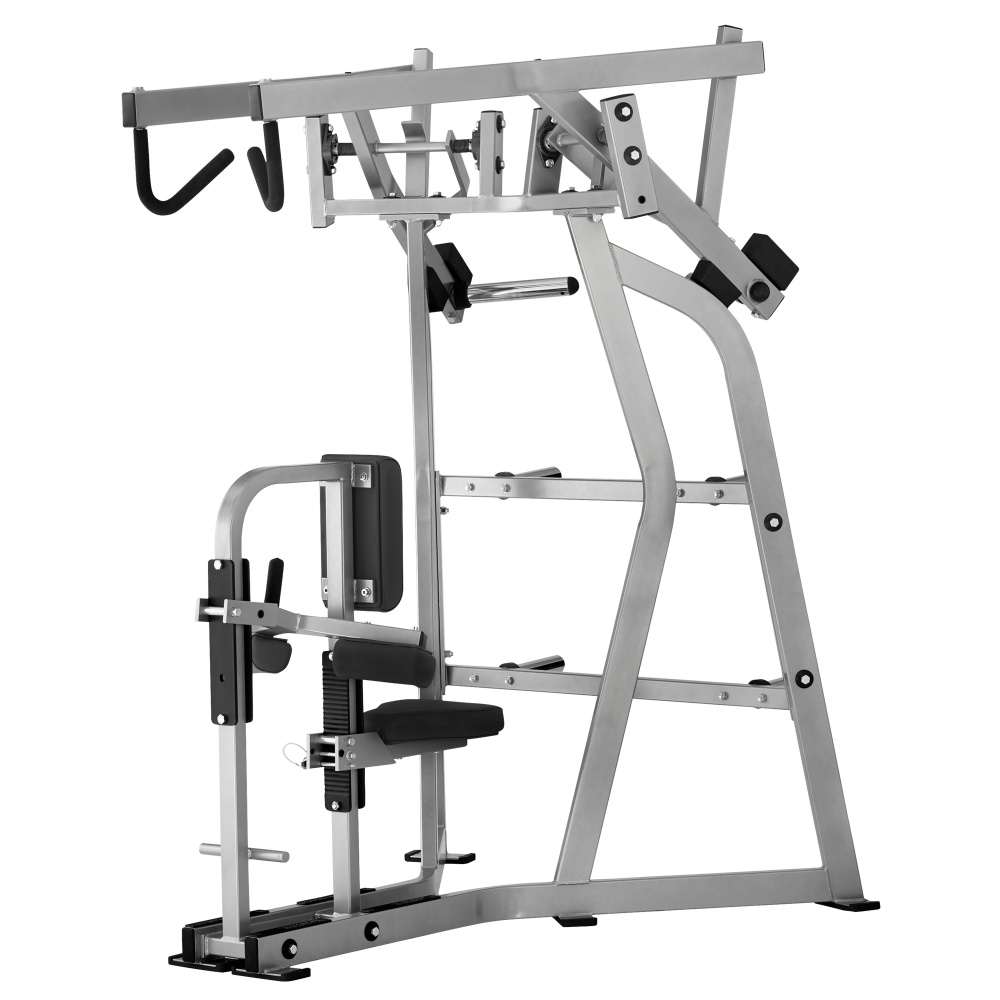 Гребная тяга сверху включает в работу широчайшие мышцы спины, ромбовидные, средние и нижние трапециевидные мышцы.Благодаря расходящейся траектории движения рычагов тело получает естественную нагрузку.
