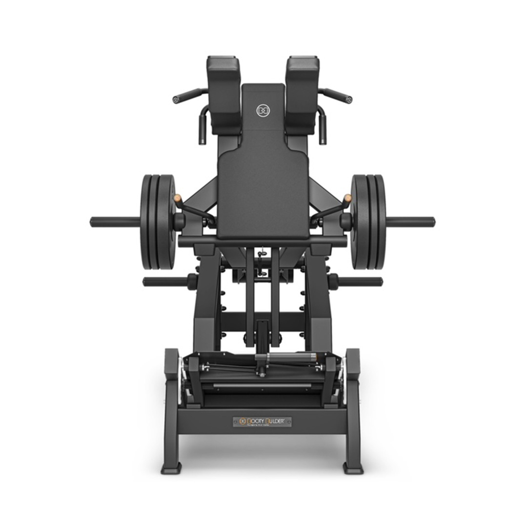 Опорная площадка для ног выполнена из металла толщиной 7 мм усиленный листом перфорированного шлифованного алюминия с резиновыми вставками для предотвращения скольжения и удобства жима . Платформа имеет овальную форму . Наличие на платформе дополнительных ручек для страховки . Так же имеются штыри для хранения дисков – металлические штыри в количестве 4 штук покрыты полиуретановыми колпаками и позволяют использовать диски для штанги различного веса внутренним диаметром 50 мм Длина и прочность штырей дает возможность навешивать диски до 400 кг.