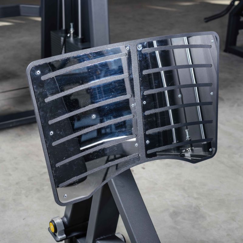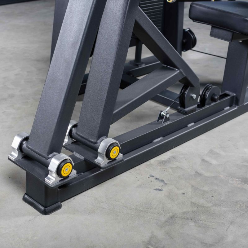 Тренажёр Жим ногами предназначен для силовой тренировки мышц ног с акцентом на квадрицепсы, ягодичные мышцы и заднюю поверхность бедра. Конструкция обеспечивает стабильную посадку и позволяет выполнять жим с контролируемой амплитудой, сохраняя правильное положение корпуса. Регулировка спинки по вылету помогает точно настроить стартовое положение под рост и длину ног, а боковой грузоблок даёт возможность менять нагрузку быстро и удобно прямо во время подходов. Рифлёная платформа повышает устойчивость стопы, что делает работу более уверенной и безопасной даже при интенсивных тренировках.