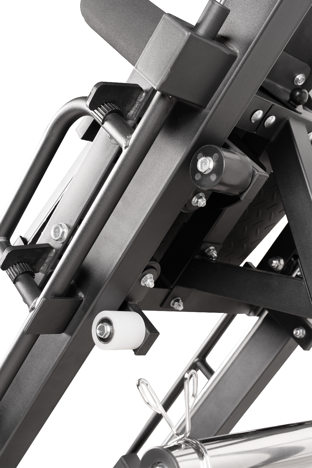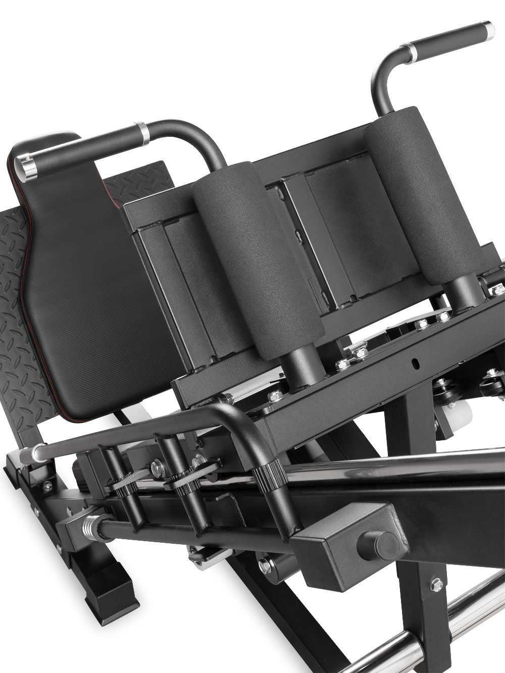 Конструкция работает со свободными весами, обеспечивая естественную биомеханику и точную нагрузку на мышцы нижней части тела.