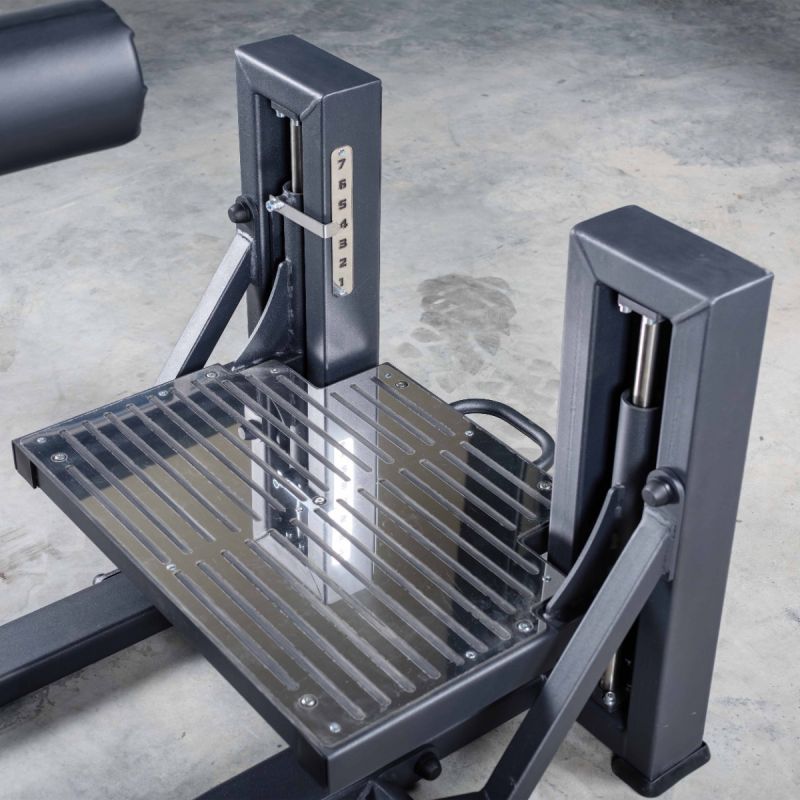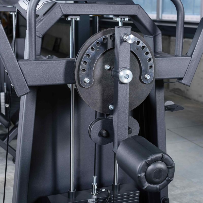 Тренажёр Отведение / Приведение ног стоя предназначен для изолированной проработки средней и малой ягодичных мышц, а также приводящих мышц бедра. Упражнение выполняется в положении стоя: пользователь фиксирует корпус и выполняет мах ногой, преодолевая сопротивление весового стека. В зависимости от направления движения выполняется отведение или приведение ноги. Регулируемая платформа и упорный валик позволяют адаптировать стартовое положение и траекторию под анатомию пользователя, обеспечивая точную настройку нагрузки и стабильную биомеханику движения.