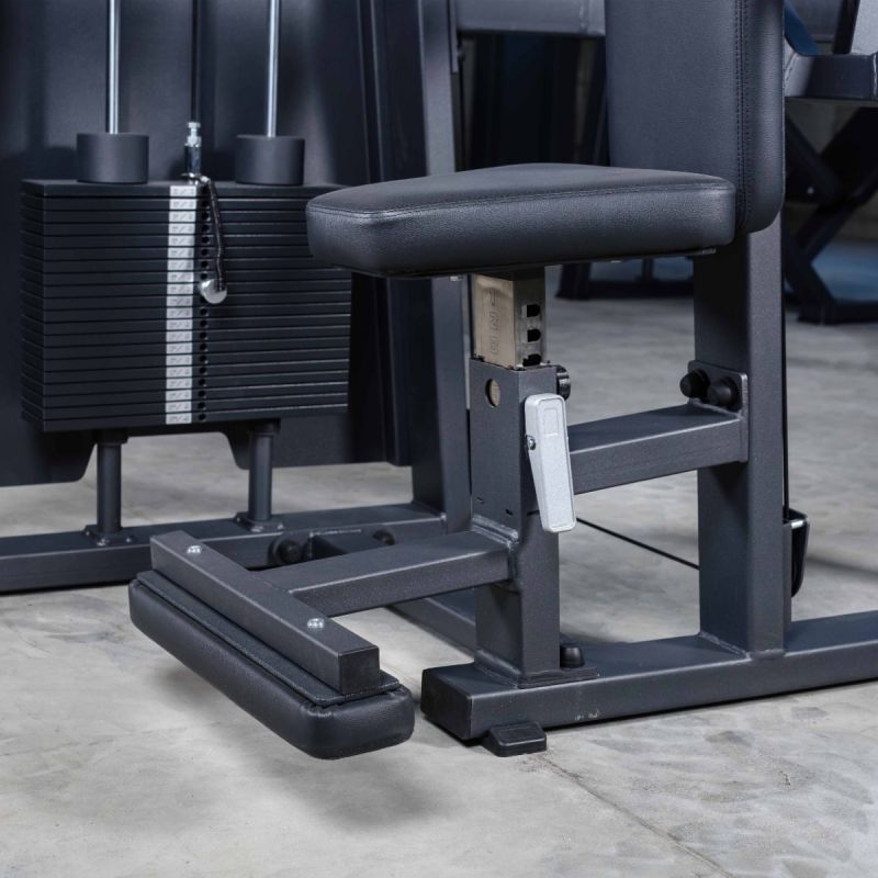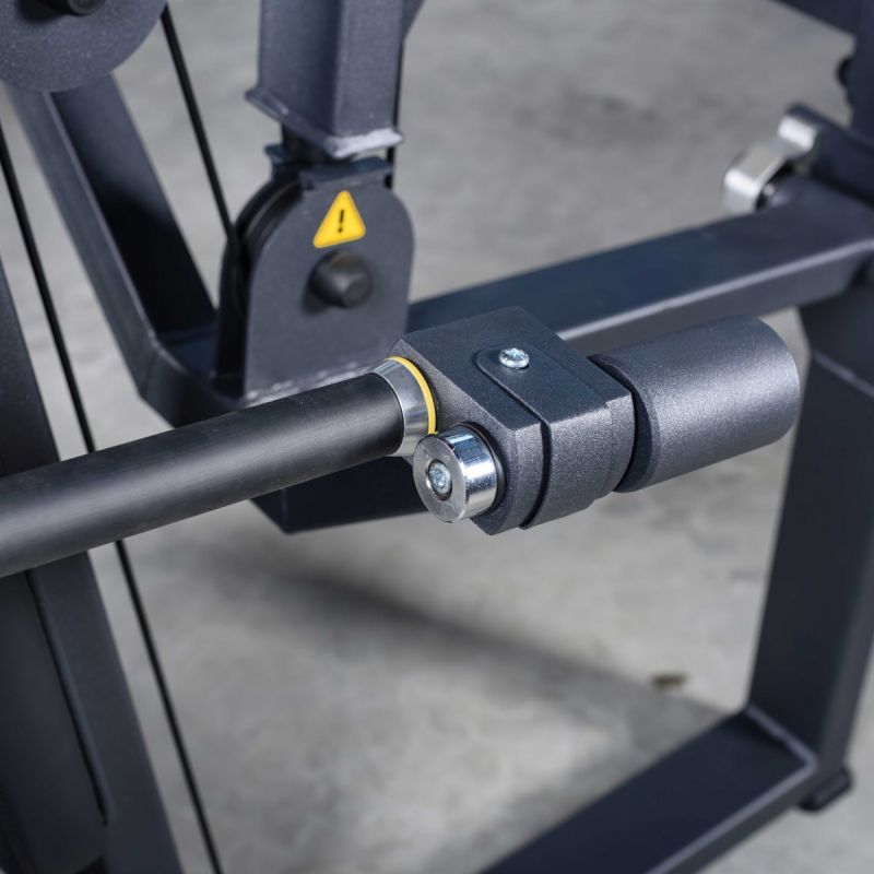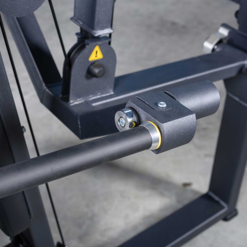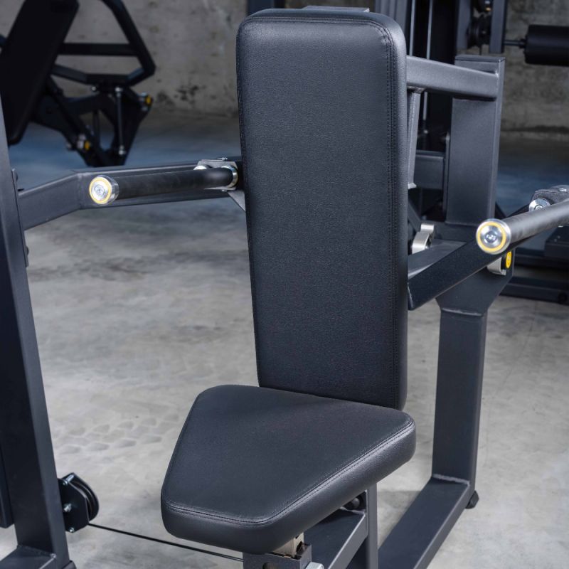 Тренажёр Трицепс-машина (имитация отжиманий) предназначен для целенаправленной проработки трицепсов в положении сидя. Упражнение выполняется за счёт жимового движения вниз, повторяющего механику отжиманий, что позволяет работать с полной амплитудой и точно дозировать нагрузку. Возможность изменения ширины хвата за счёт поворотных рукоятей даёт вариативность выполнения упражнения и позволяет смещать акцент нагрузки, делая тренировку более эффективной и комфортной для пользователей разного уровня подготовки.