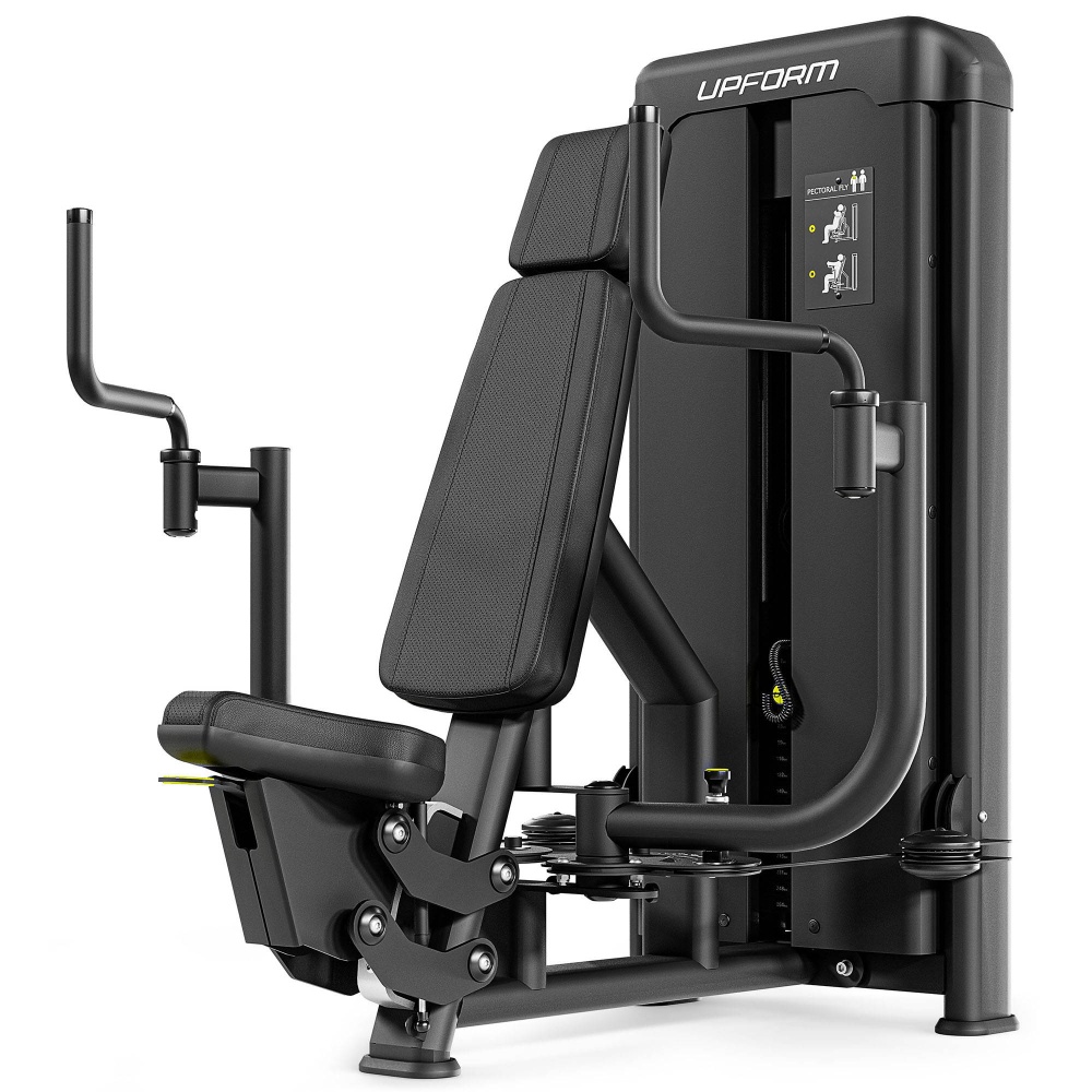 Ручки, отмеченные жёлтым, позволяют быстро и легко менять положение рычагов. Расстояние между ними регулируется в диапазоне 9 градусов, поэтому каждый, кто хочет укрепить свои мышцы на тренажёре UR-U028, сможет найти удобное для себя положение, обеспечивающее наилучшие результаты и комфорт во время тренировки.