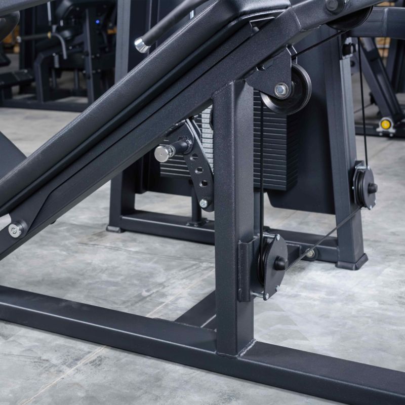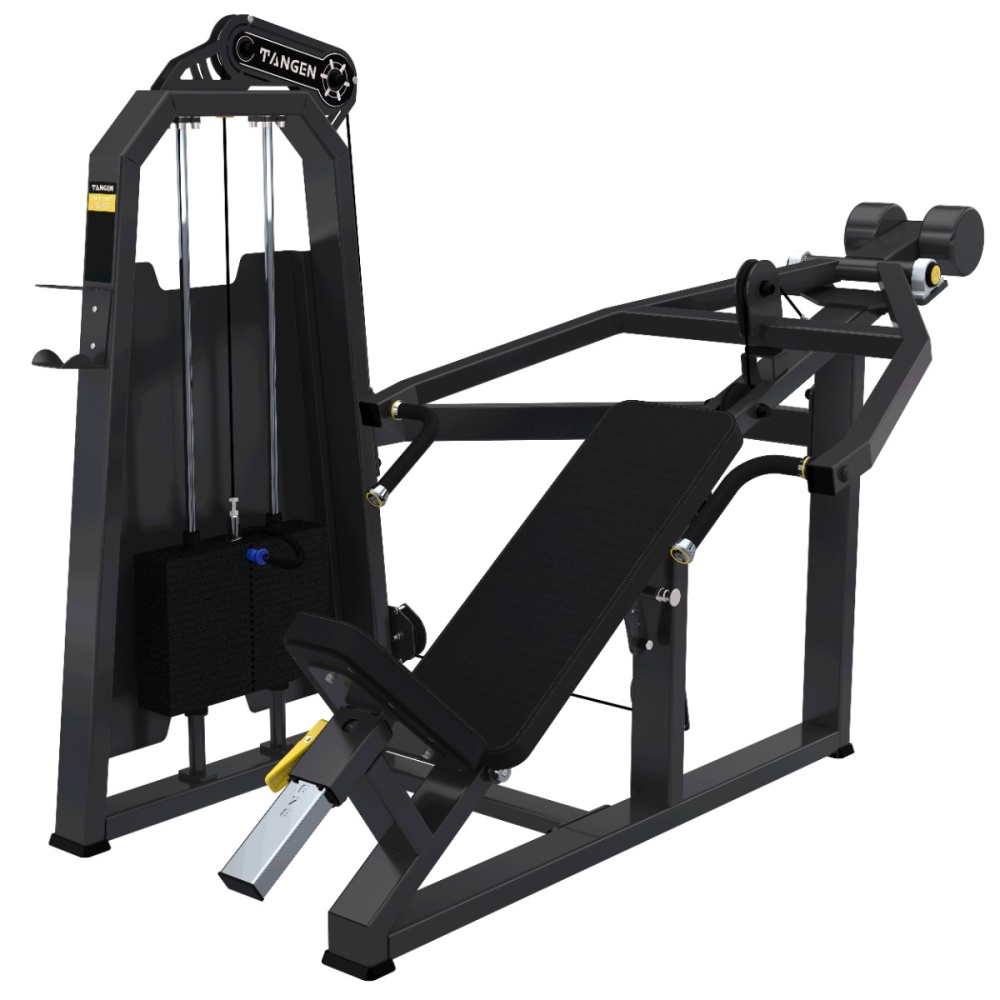 Тренажёр Наклонный грудной жим предназначен для целевой проработки верхней части грудных мышц. Упражнение выполняется в положении сидя с жимовым движением вперёд и вверх, что позволяет сместить акцент нагрузки на верх груди. Регулируемые сиденье и спинка дают возможность точно настроить посадку под рост пользователя и выбрать оптимальный угол жима. Синхронная работа рукоятей и стабильная кинематика движения обеспечивают комфортную, безопасную и эффективную тренировку как для начинающих, так и для опытных атлетов.