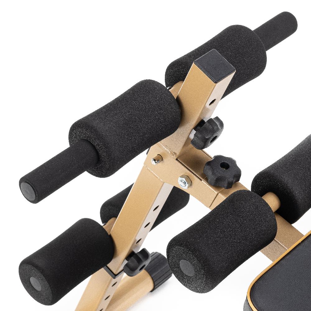Оборудование предназначено для всесторонней проработки мышц пресса, а также для различных типов упражнений – приседания, жим лежа, подъем ног и т.д. Угол наклона регулируется по высоте в 5 положениях, что делает ее незаменимой для выполнения самых разнообразных упражнений.