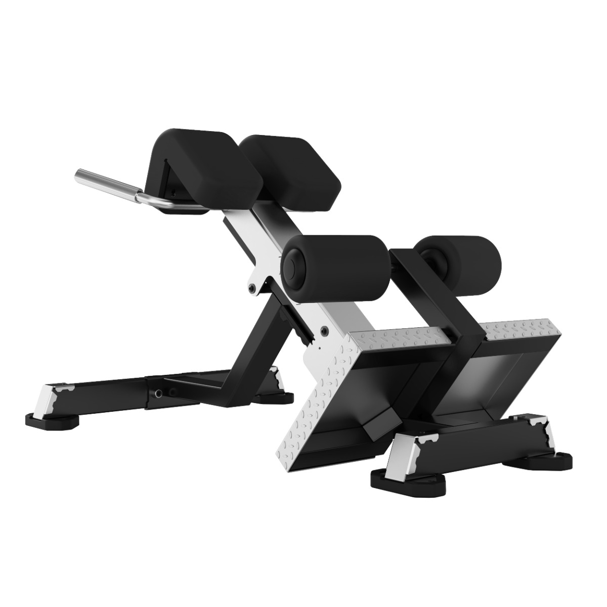 Тренажер для разгибания спины (гиперэкстензия) предназначен для проработки мышц, выпрямляющих позвоночник, и задней поверхности бедра. Регулируемая высота упорных подушек позволяет точно подстроить тренажёр под рост и анатомические особенности пользователя, обеспечивая максимальный комфорт и эффективность упражнения.