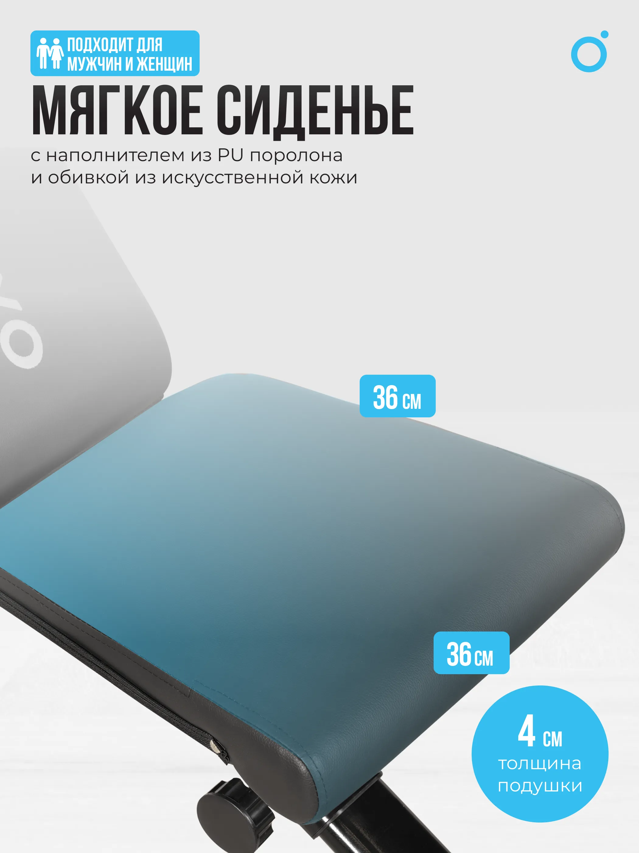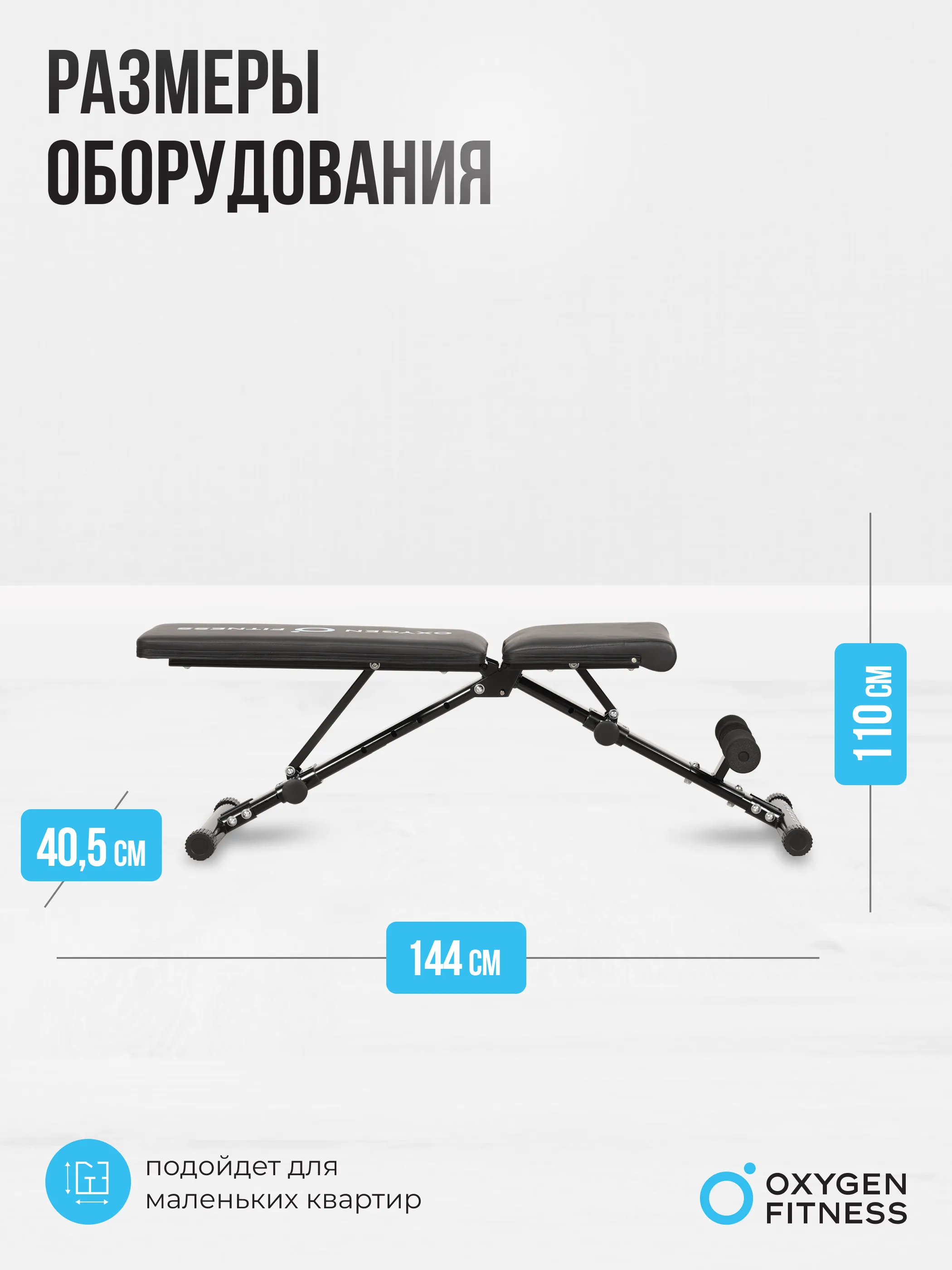 • комфорт: эргономичное сиденье и многоуровневая регулировка обеспечивают максимальный комфорт и поддержку во время тренировок; • компактность: складывающаяся конструкция позволяет легко хранить скамью в небольших помещениях.