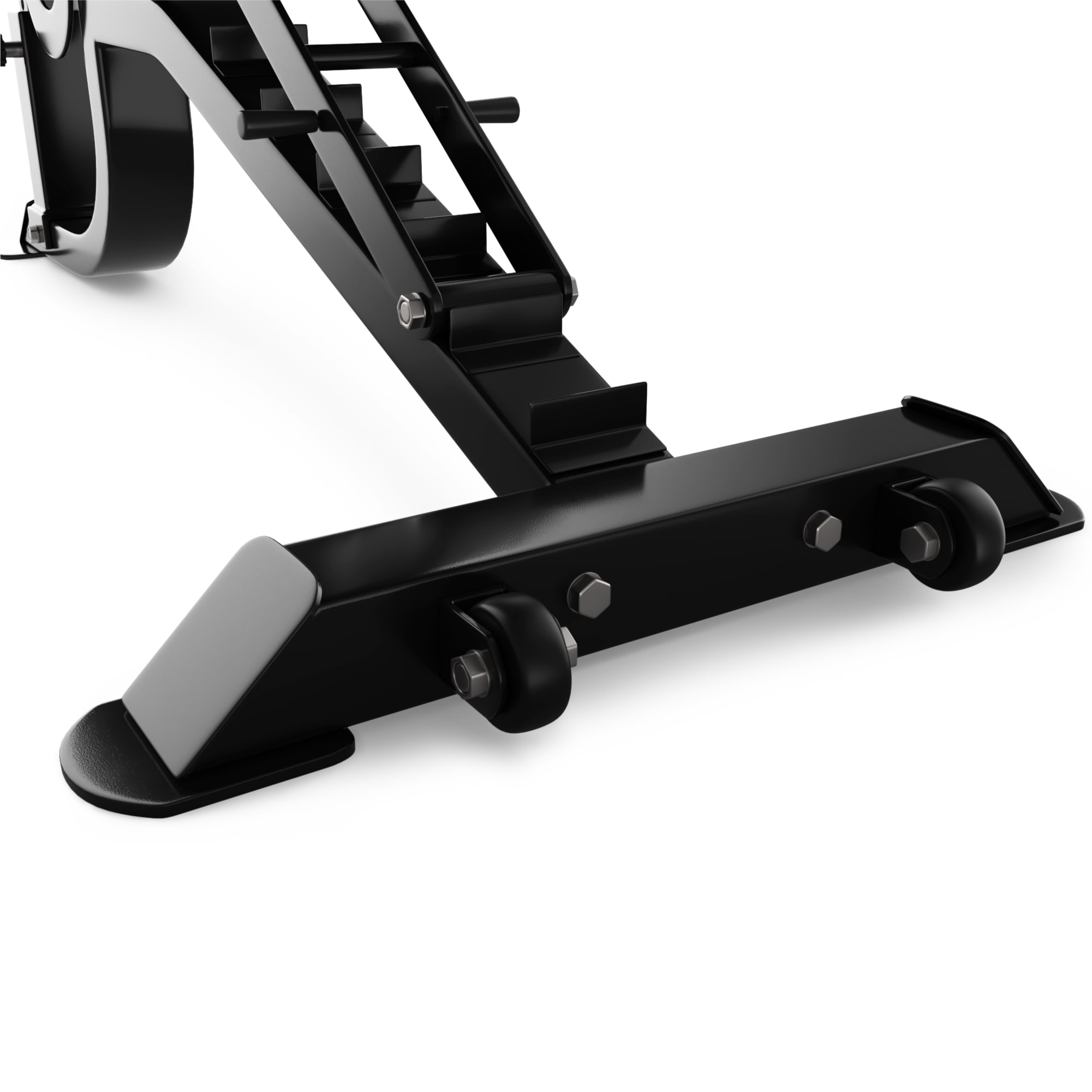 Силовую скамью легко адаптировать в соответствии с фитнес-целями пользователя. Наклон спинки регулируется в 7-ти уровнях от 90 до -14°, что позволяет подобрать нужную позицию для тренировки. Возможно установить отрицательный угол наклона и проработать нижнюю часть грудных мышц.