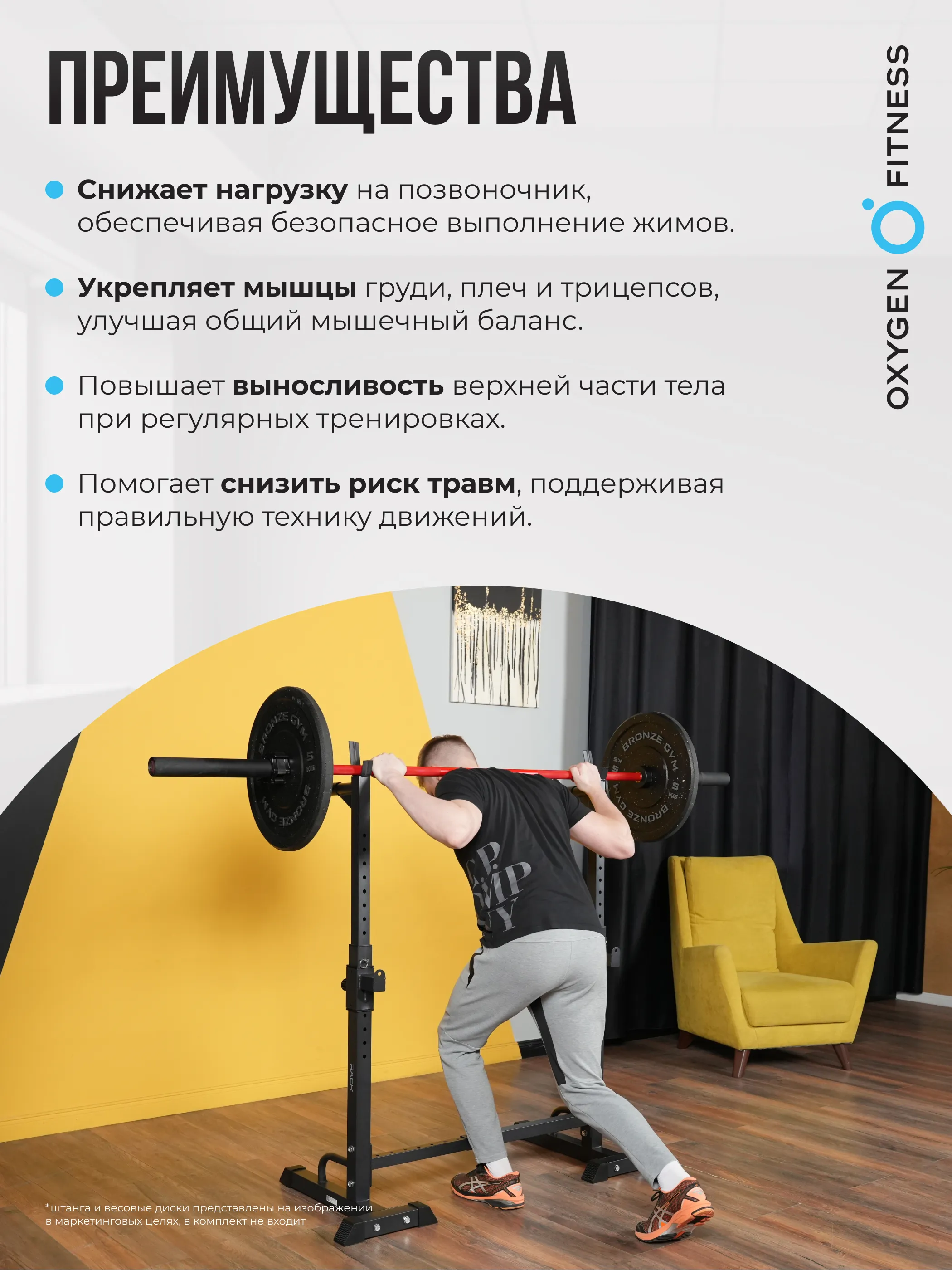 Стойка под штангу OXYGEN FITNESS RACK — это идеальный выбор для тех, кто стремится к эффективным и разнообразным тренировкам в домашних условиях, обеспечивая максимальный комфорт и безопасность!