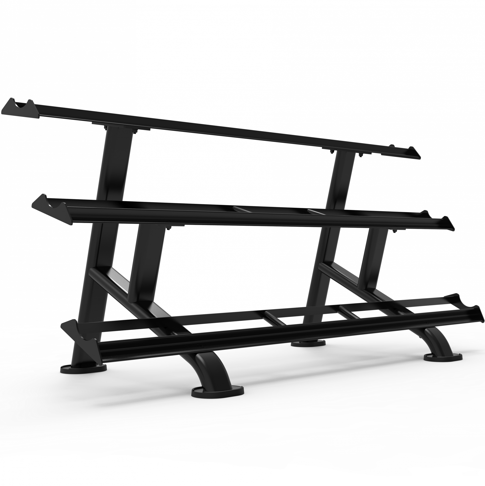 - Трёхъярусная конструкция позволяет разместить до 15 пар гантелей (по 5 пар на каждом ярусе).