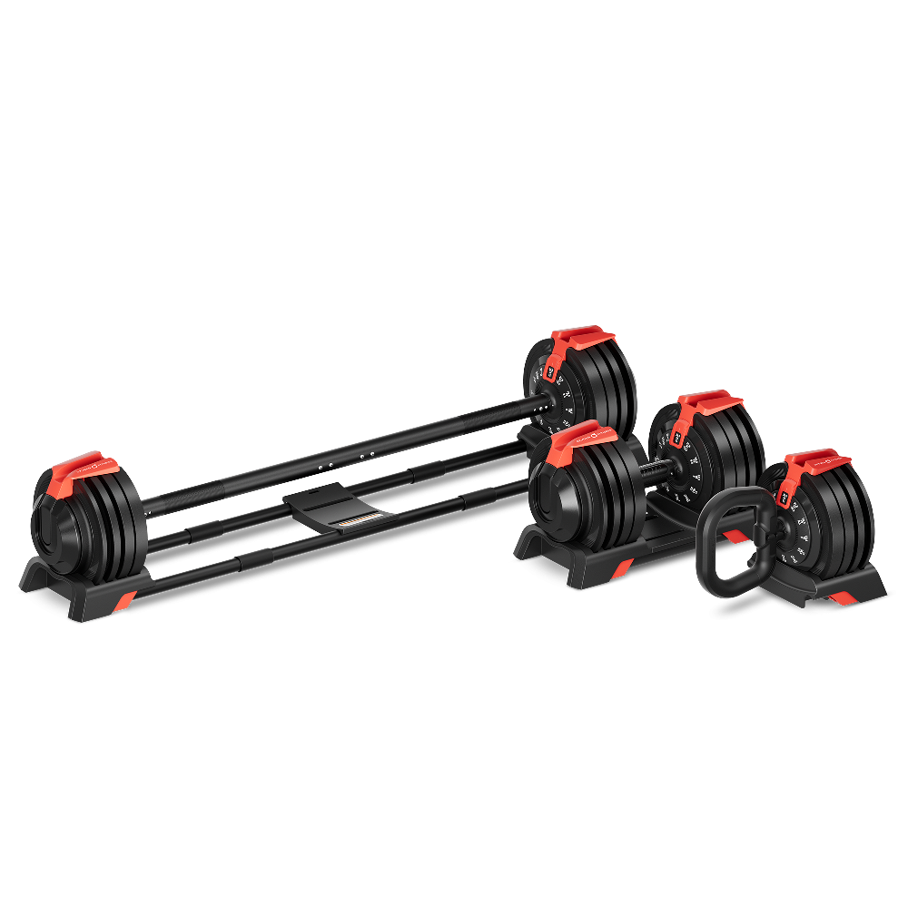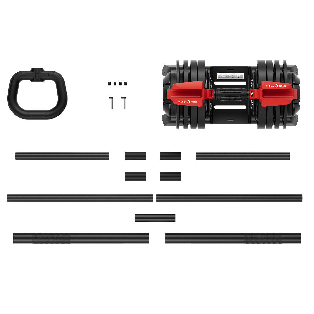 Предусмотрено 12 весовых вариаций для штанги: 4/6/8/10/11,5/14/15/17/18,5/20/22/24 кг. С ее помощью вы сможете выполнять разнообразные упражнения, такие как приседания, жимы, становую тягу и многое другое.