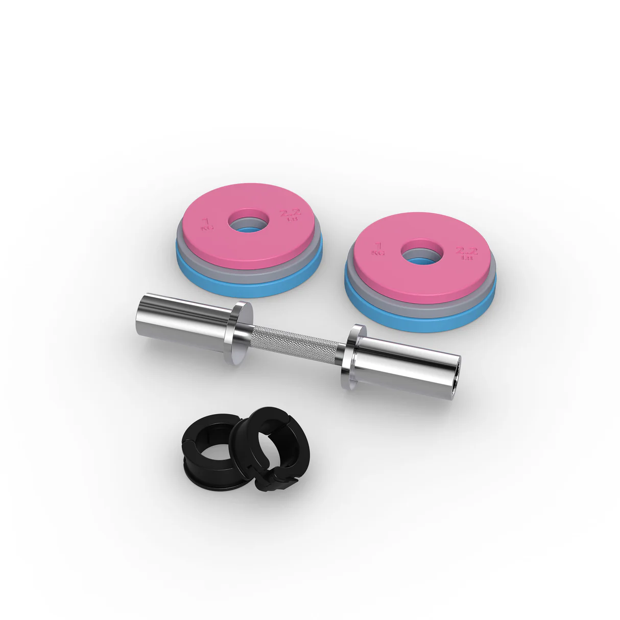 Две штанги с гантелями и штанга с гирями дают вам возможность выполнять комплексные силовые тренировки, в которые вы можете включить такие упражнения, как сгибания на бицепс, разгибания на трицепс, жим от плеч и качели с гирями. Весовые диски разных размеров (1 кг, 1,25 кг и 2 кг) можно комбинировать по своему усмотрению, чтобы варьировать интенсивность тренировок.